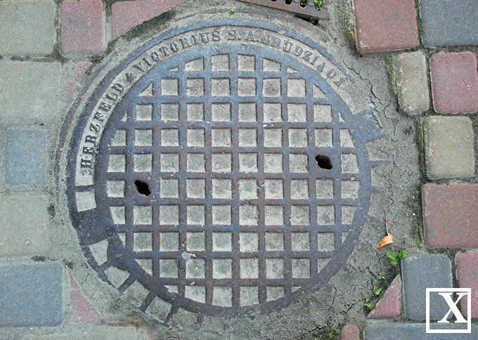 Люк фірми Herzfeld & Victorius S.A. Grudziądz в центрільній частині міста