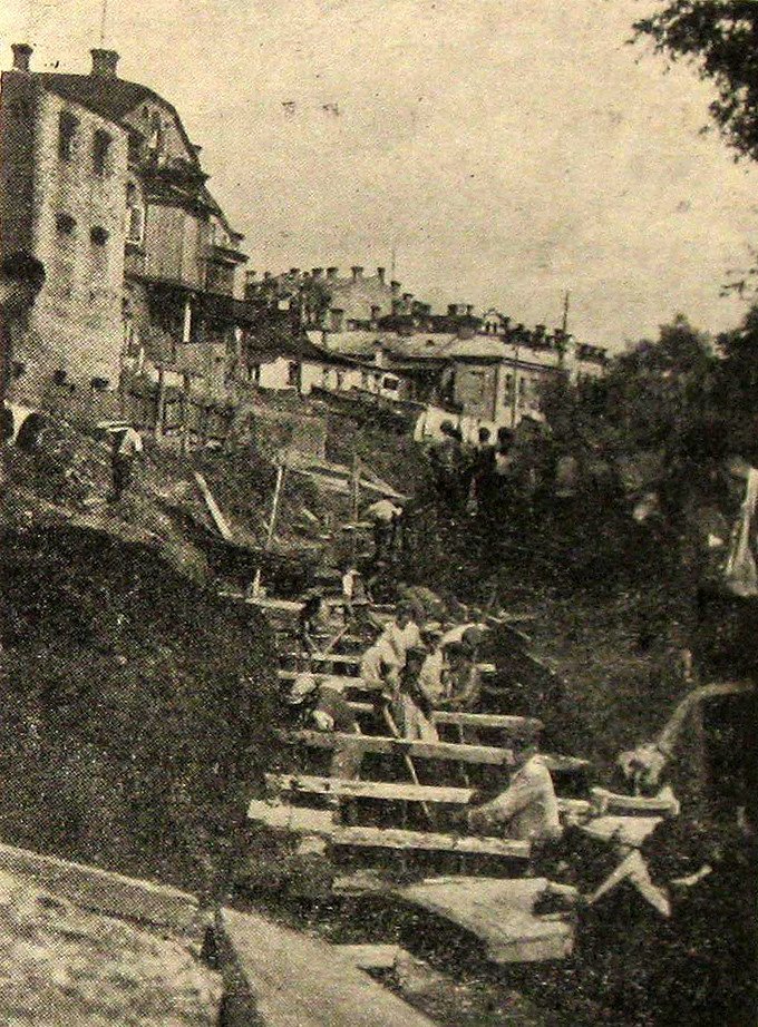 Місце на Замковій, де водовози набирали воду. Зображення з книги «Луцьк у старовинній листівці, гравюрі та фотографії» Віктора Літевчука