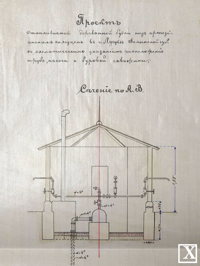 План опалюваної будки над артезіанською криницею Топольницького. Копія з Державного архіву Волинської області
