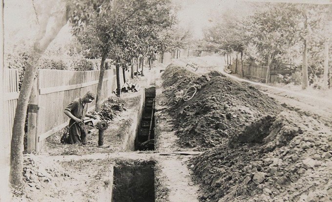Прокладання водогону на теперіщній вулиці Бойка у тридцятих. Копія з архіву підприємства "Луцькводоканал"