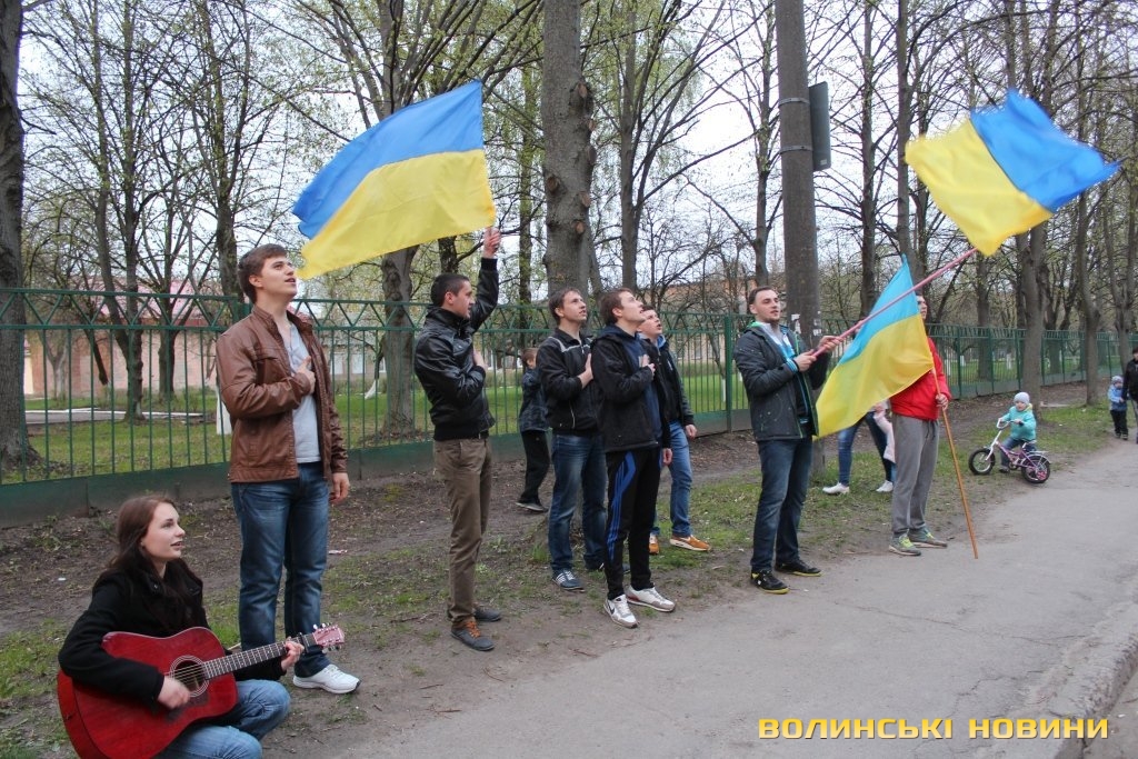 Акція підтримки українських військових відбулася 17 квітня. Студенти підтримали Збройні Сили України та Внутрішні війська вигуками «слава Україні – героям слава», «Схід і Захід разом» та спільним виконанням державного гімну України, який молодь вирішила заспівати двічі.