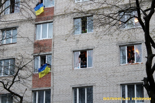 Весь гуртожиток у Луцьку співав гімн для військових. ВІДЕО