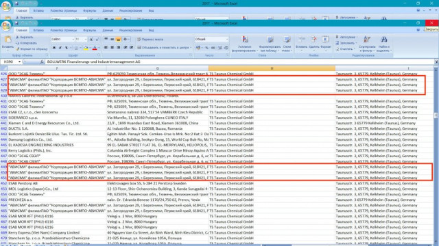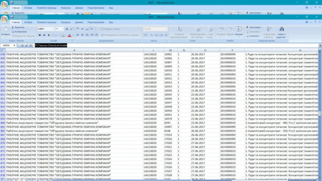 Нижче подані скриншоти з української митної бази. Ці дані є закритими, однак ні для кого не є секретом, що корумповані чиновники торгують цією інформацією, і тому її можна знайти у вільному доступі, в мережі. У списку експортних операцій за 2017-й та перше півріччя 2018-го, що є у розпорядженні «Тижня», можна легко відстежити, куди, кому і на яких умовах постачали ільменітовий та рутиловий концентрати українські підприємства.