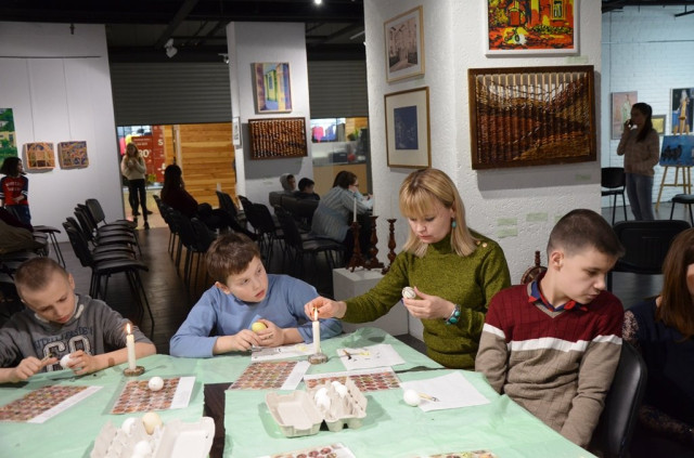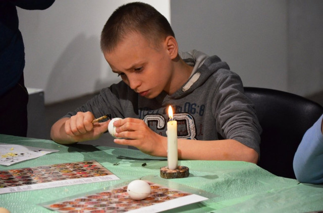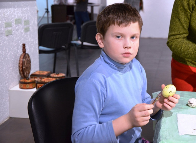 Напередодні світлого свята Великодня в Арт-галереї Фонду Ігоря Палиці «Тільки разом» – особлива творча атмосфера. Учні 5-Б класу Луцького навчально-реабілітаційного центру натхненно декорують великодні яйця. Майстер-класи з писанкарства для особливих дітей проводить член Національної спілки майстрів народного мистецтва України Андрій Бондарук, повідомляє прес-служба Фонду.