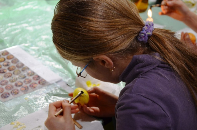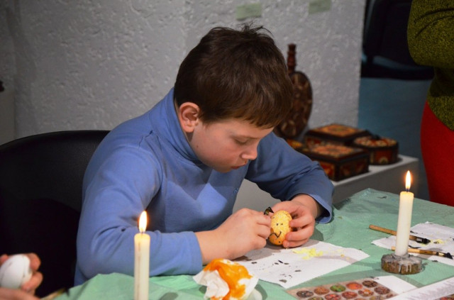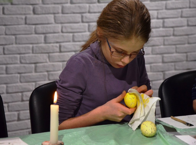 Понад годину учасники майстер-класу натхненно розписують великодні яйця. Кожен старанно виводить писачком контури орнаменту, обирає колір для своєї писанки. У кого не виходить – допомагають батьки чи майстер. В кінці майстер-класу на столі з’являються різнокольорові яйця. Квіточки, крапочки, листочки, сердечка… Разом з тим, є в них і дещо спільне – в кожну писанку вкладено найщиріші дитячі емоції та почуття.