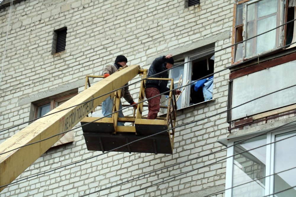 Відновлюють військове містечко біля арсеналу. Склять вікна, ремонтують дахи.