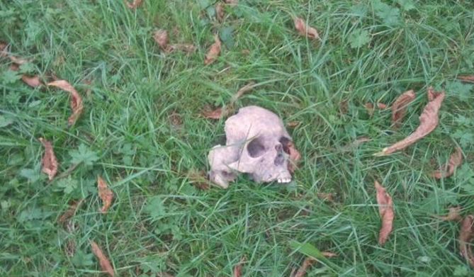 За словами користувача, череп лежав п’ять днів біля Свято-Троїцької католицької церкви, біля якої розташований дитячий майданчик.