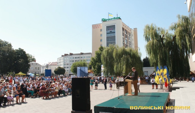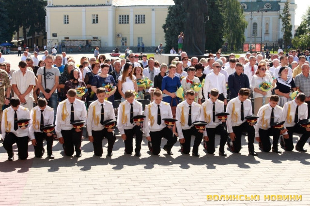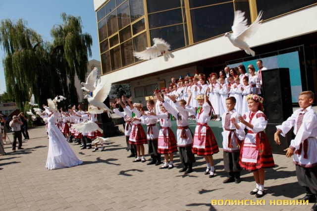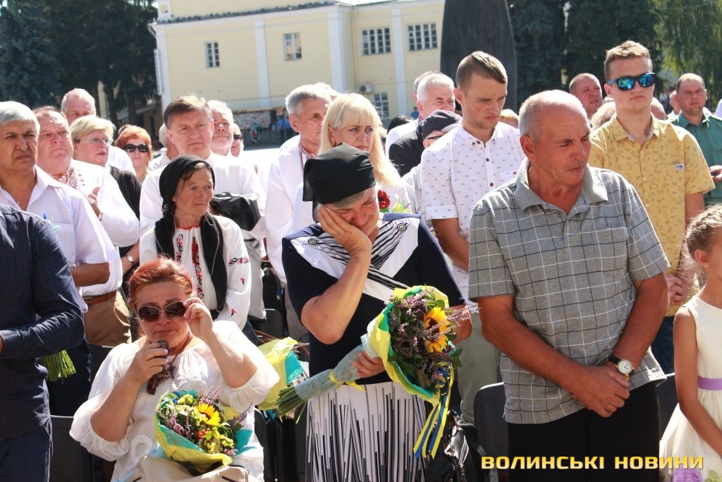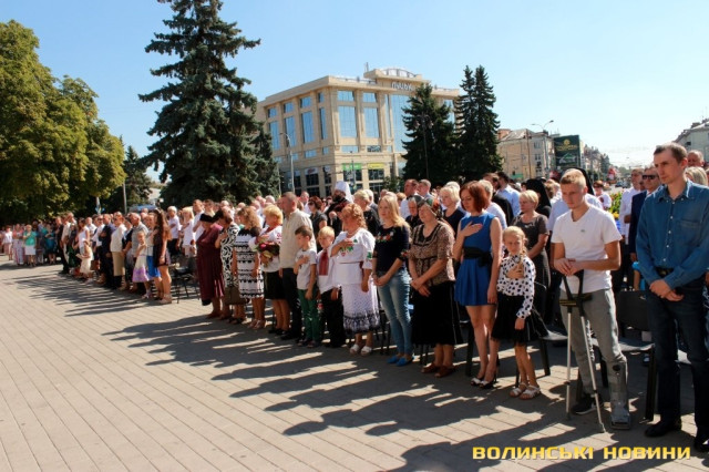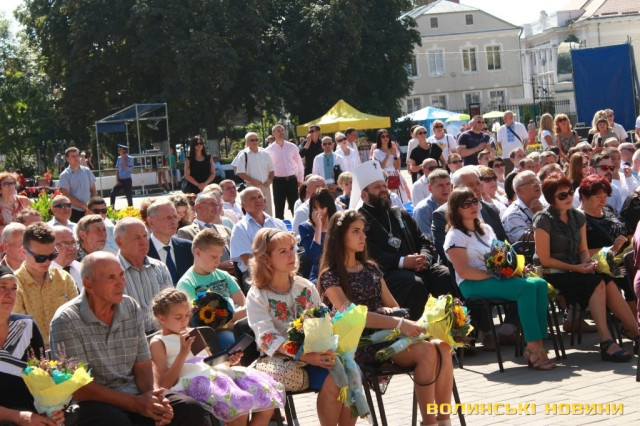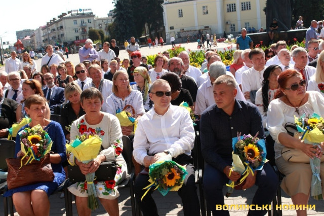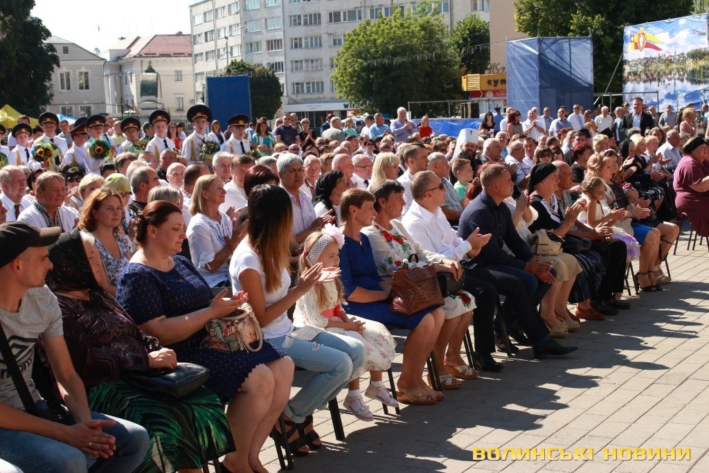 Квіти для родин загиблих бійців, відзнаки полеглим і живим Героям та голуби, випущені у мирне небо над містом: урочиста академія з нагоди Дня міста відбулася 20 серпня на Театральному майдані у Луцьку.