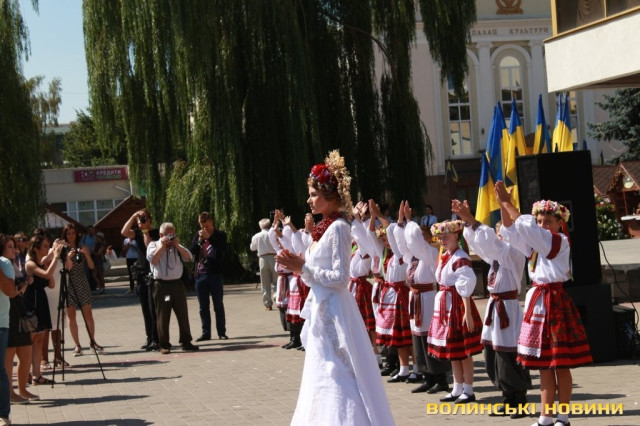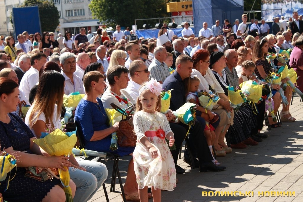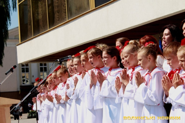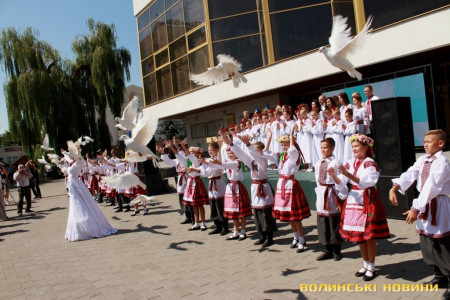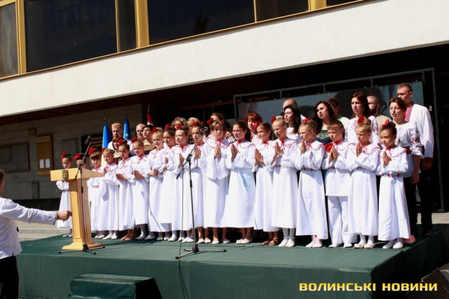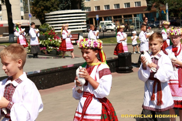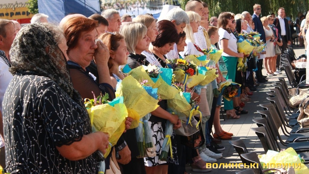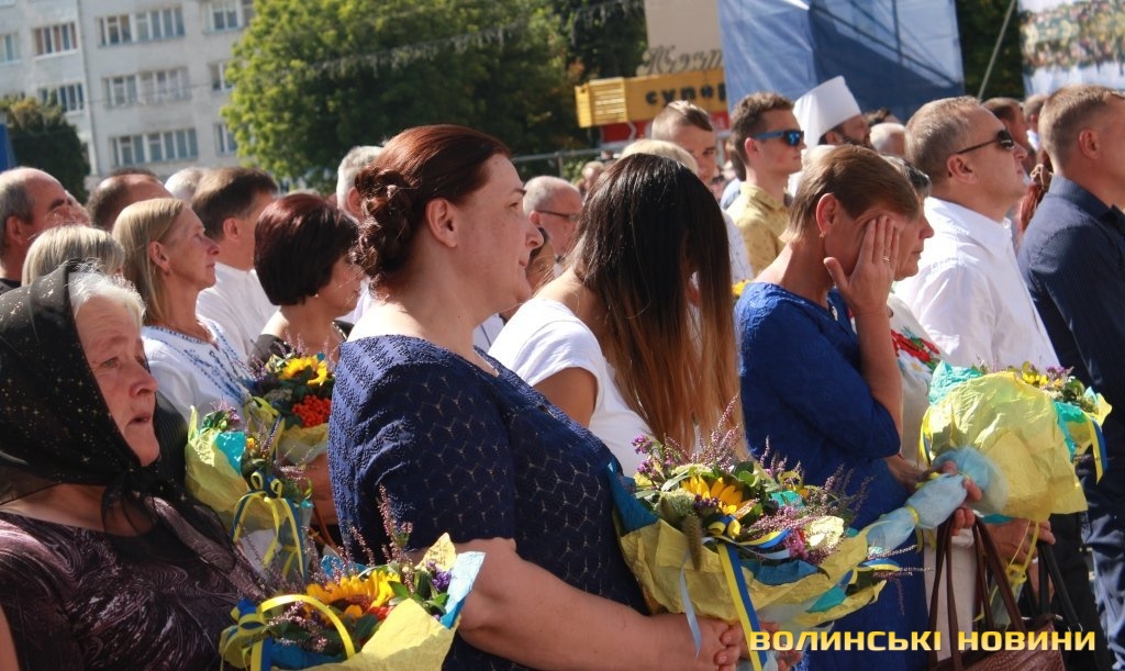 Квіти для родин загиблих бійців, відзнаки полеглим і живим Героям та голуби, випущені у мирне небо над містом: урочиста академія з нагоди Дня міста відбулася 20 серпня на Театральному майдані у Луцьку.