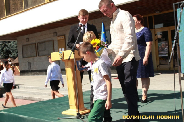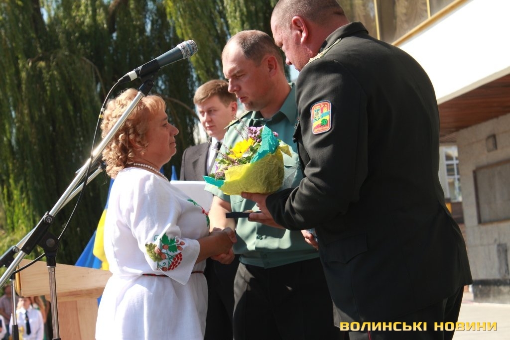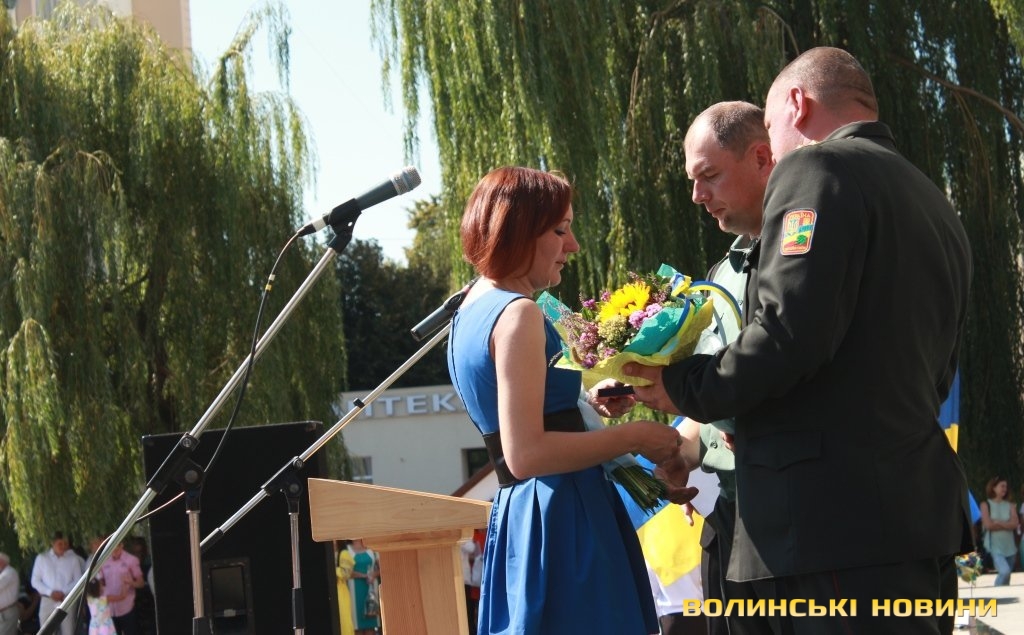 Почесну грамоту голови Волинської ОДА отримав Дмитро Ураєв.Заступник командира 14-ї ОМБ підполковник Олександр Голубєв від особового складу бригади привітав лучан із днем міста, зауваживши, що особливу шану хочеться віддати містам і селам Волині, волонтерам, які надають допомогу 14-ї ОМБ, як раніше 51-й бригаді.