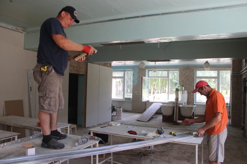 Для комфортного перебування кухарів в харчоблоках та учнів, які прийдуть сюди на сніданки та обіди, будівельники замінюють плити та електрообладнання, роблять вентиляцію та ставлять нові роздаткові лінії. Обіцяють зробити все якнайкраще, аби 1 вересня школярі, вчителі та кухарі не впізнали свої шкільні їдальні.