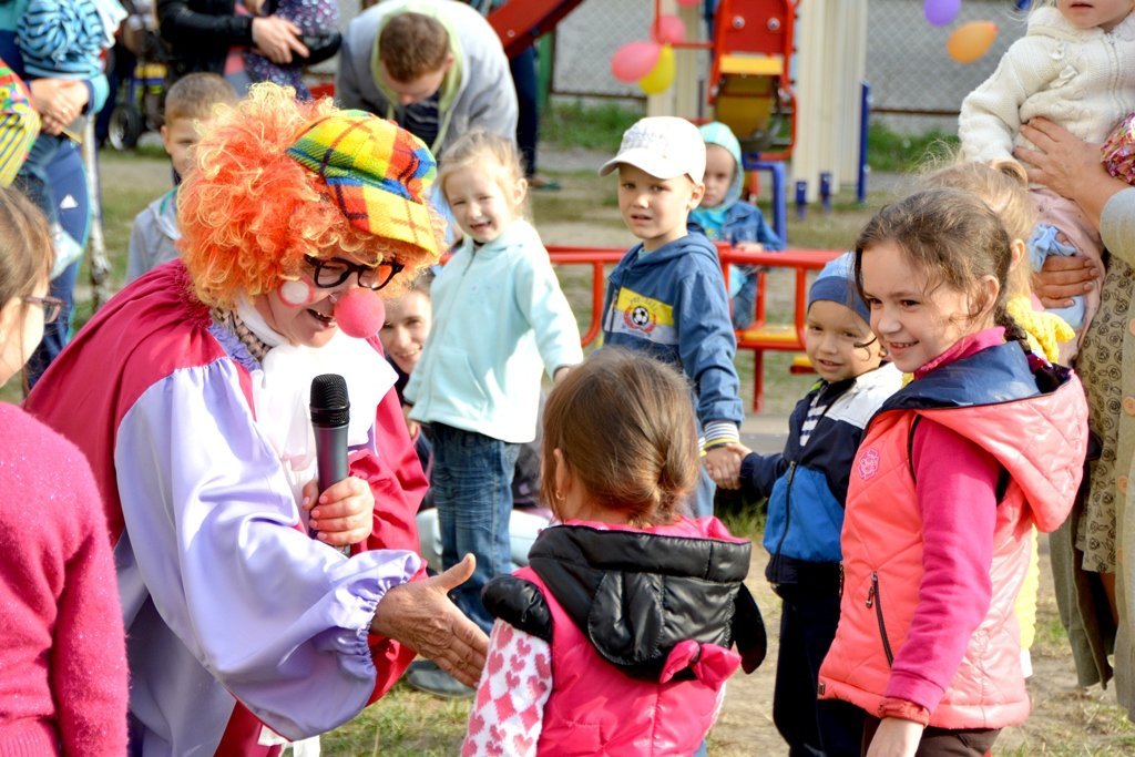 Тож уже зранку у передчутті свята перед будинком почала метушитись малеча, якої дедалі ставало все більше й більше. А згодом до них приєднались і казкова Пеппі Довга Панчоха та Бульбашка, які кілька годин розважали дітвору.
