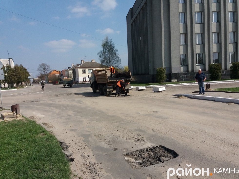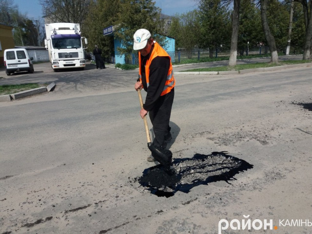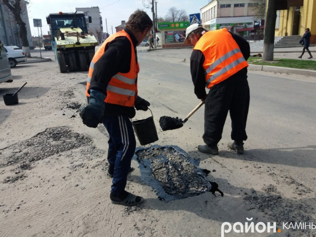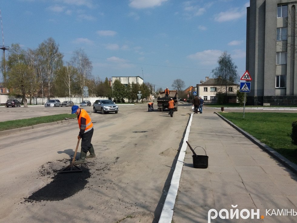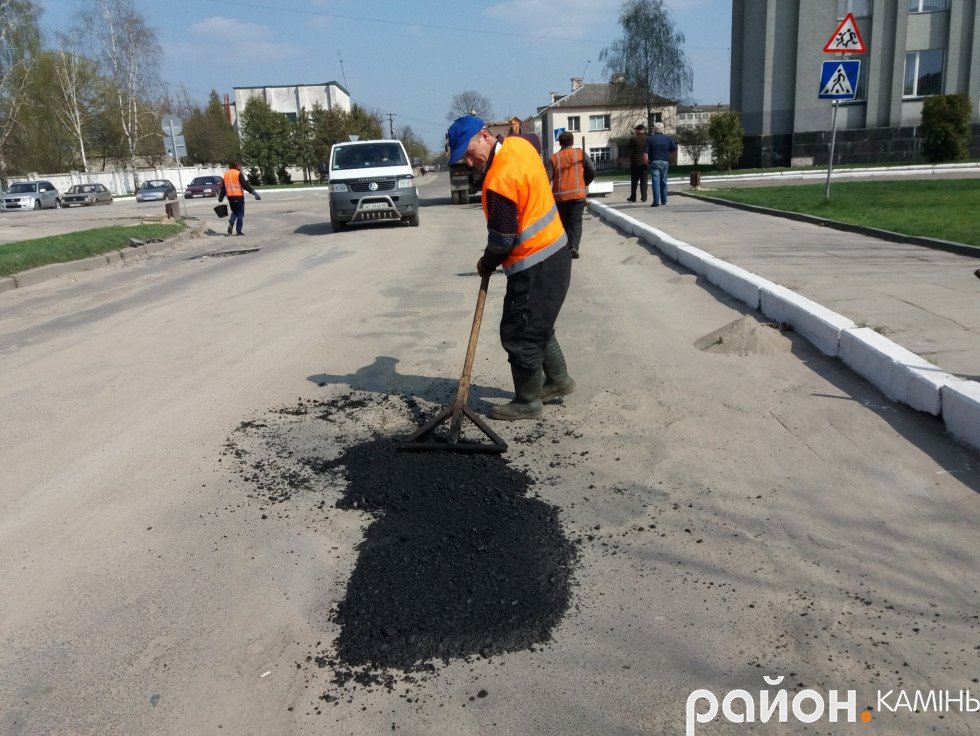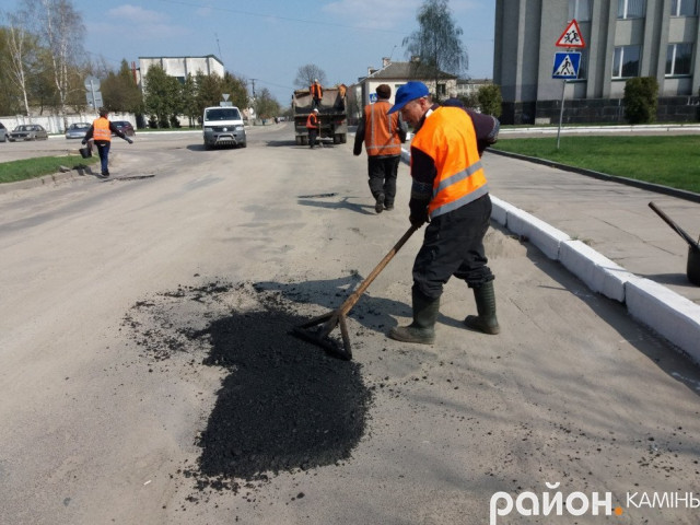 Після фрезування асфальту на вулицях Каменя-Каширського 10 квітня нарешті розпочали латати ями.