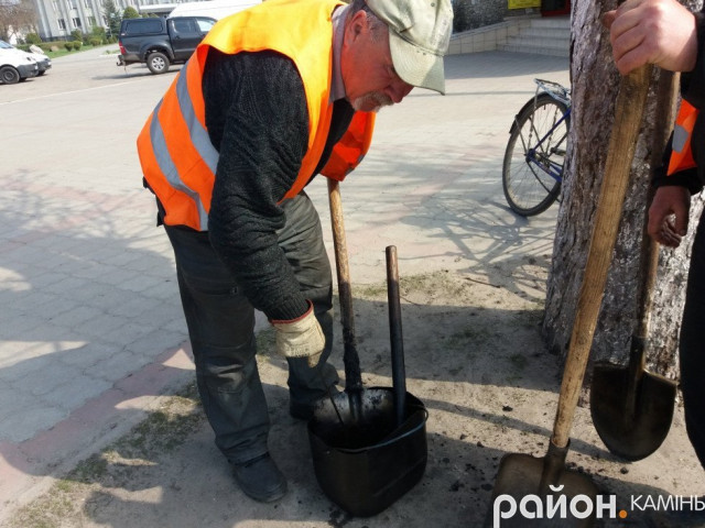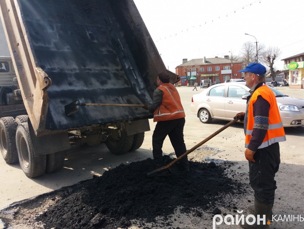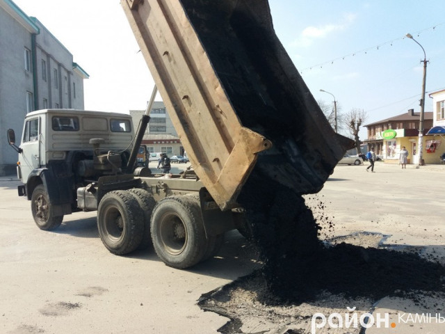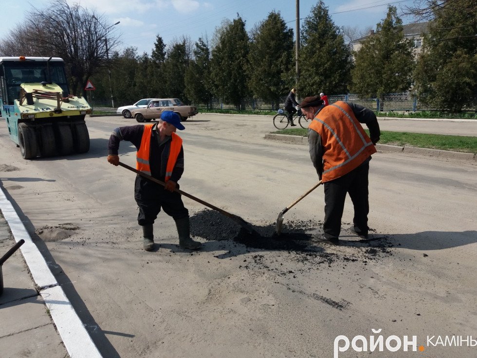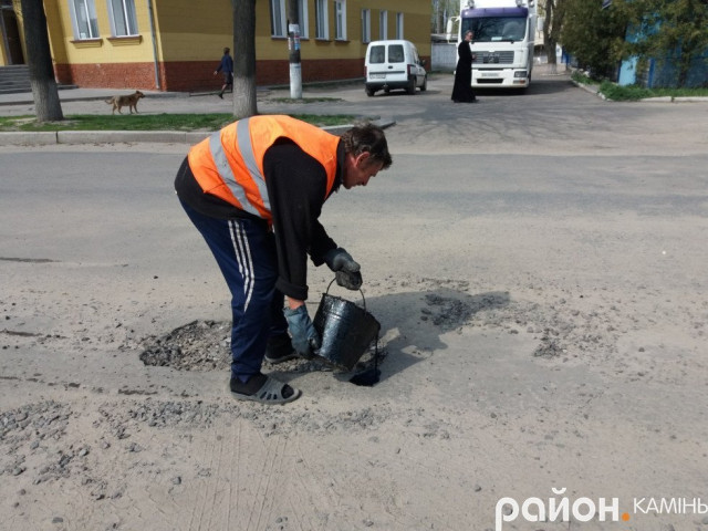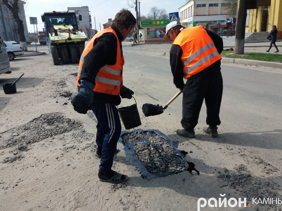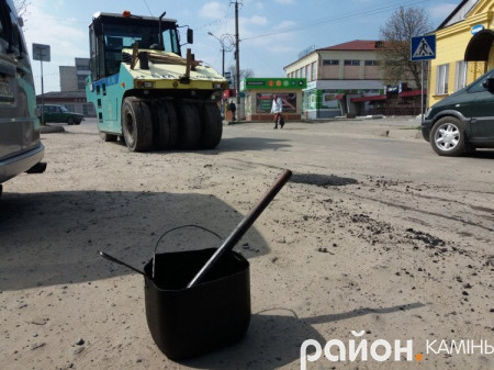 Після фрезування асфальту на вулицях Каменя-Каширського 10 квітня нарешті розпочали латати ями.
