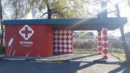 Перша зупинка громадського транспорту із зображенням туристичного логотипу Волинської області з'явилася у Княгининку. Фото опублікував в мережі Станіслав Ольшевський.