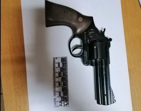 Прибувши за кілька хвилин, інспектори затримали 25-річного громадянина, на якого вказав чоловік. При перевірці у нього виявили вогнепальну зброю. Чоловік поводився агресивно та виражався нецензурною лайкою. Предмет, ззовні схожий на пістолет, згодом вилучив слідчий для подальшої експертизи. На порушника ж патрульні оформили 1 постанову і 3 протоколи, у тому числі, за дрібне хуліганство і злісну непокору поліцейським.