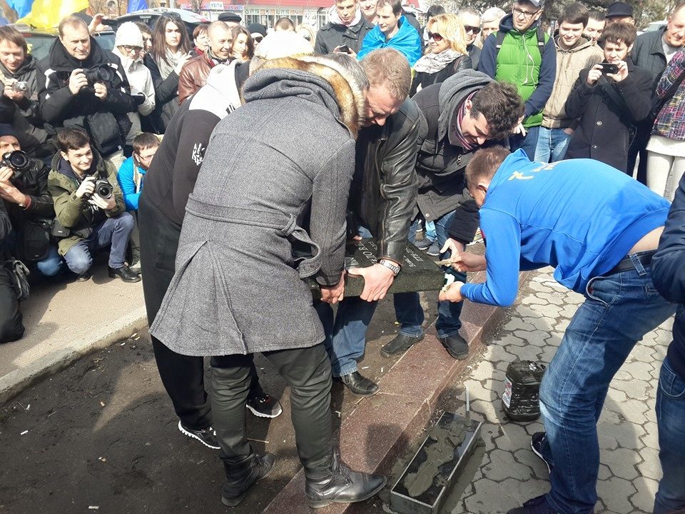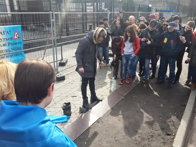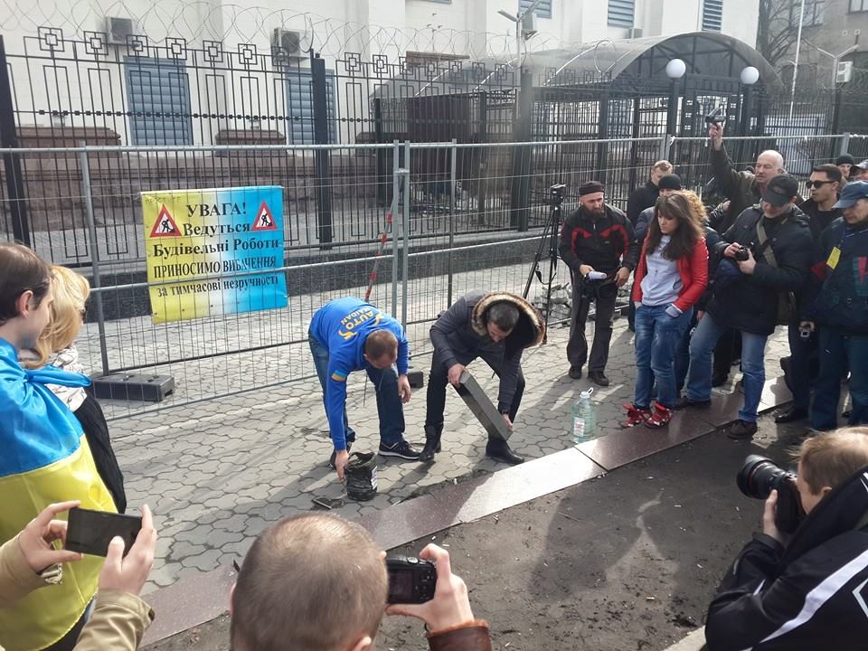 У Києві біля посольства РФ установили «пам'ятну дошку» Путіну