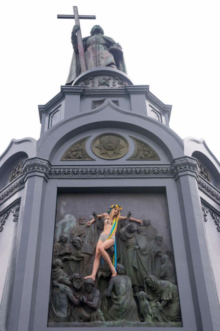 У Києві гола активістка FEMEN забралася на пам'ятник Володимиру