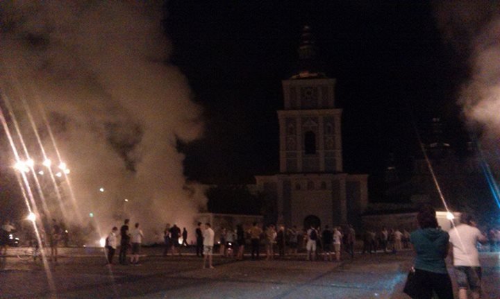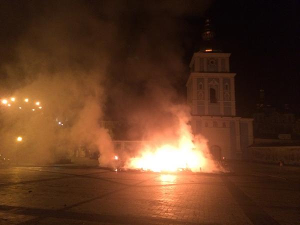 «Зі слів очевидців, ніби як було 3 людини, які облили чимось горючим намети, підпалили і втекли. "Випадково" бути не може. Згоріли 2 намети - навпроти собору і в сквері на початку Трьохсвятительській. До цього, хвилин за 5-7 до того, як я побачила вже гасіння згорілих наметів, був звук якогось "вибуху" або "пострілу". Мені здалося, в районі Майдану. На Михайлівській кілька пожежних машин. Міліції немає, свідків не опитують», - розповіла вона.