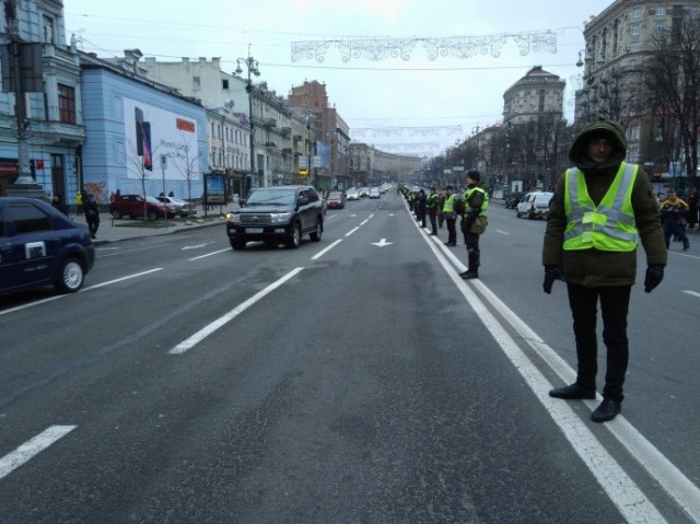 Як повідомляє Українська правда, одну смугу на Хрещатику залишили проїжджою для машин, тому марш йде по одній вільній смузі. На попередніх маршах правоохоронці перекривали вулицю повністю.