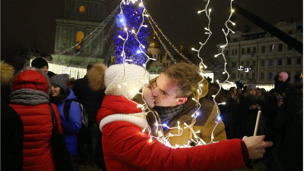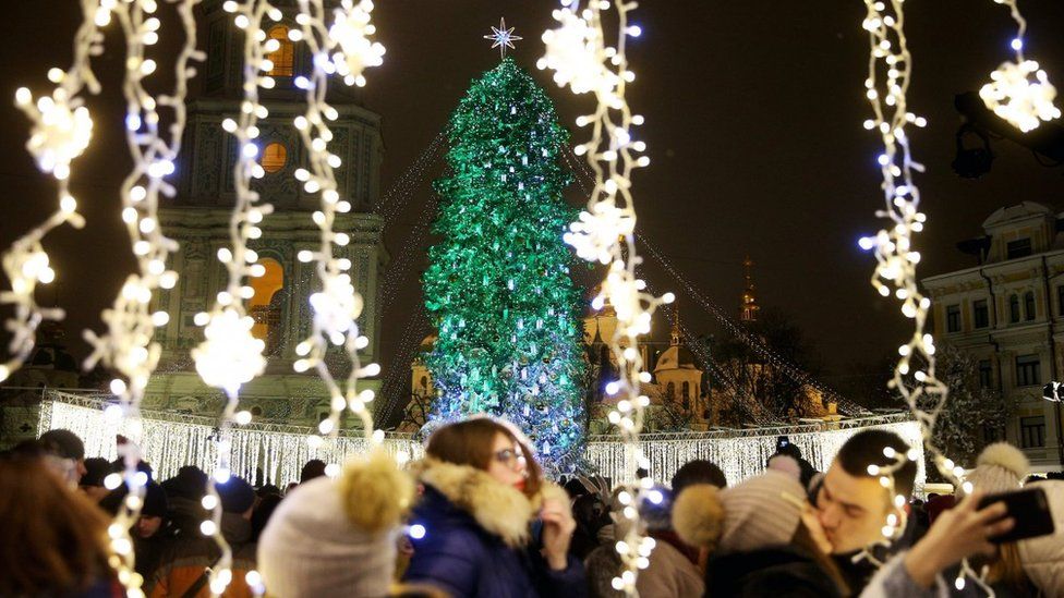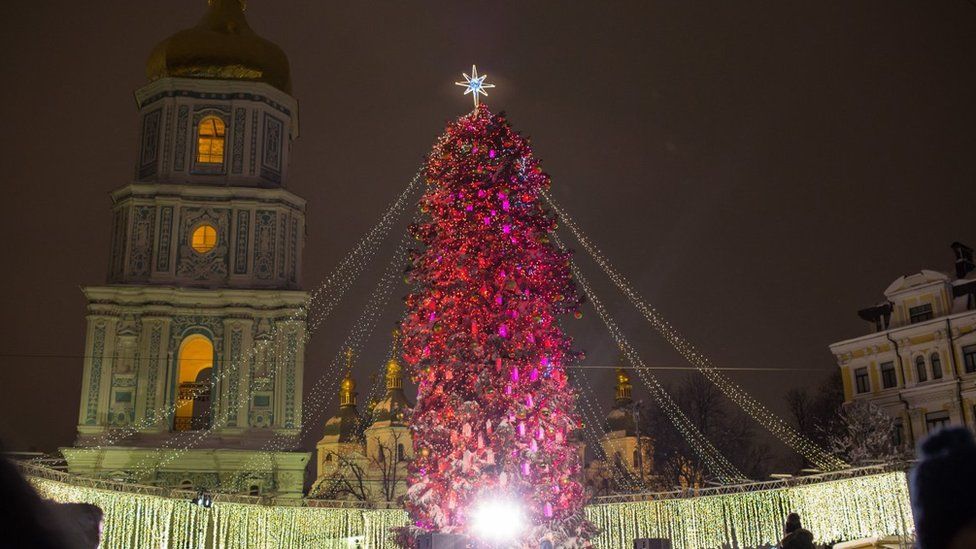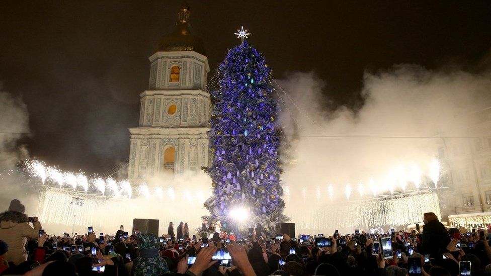 У центрі Києва на Софійській площі запалили головну новорічну ялинку країни, передає ВВС Україна.