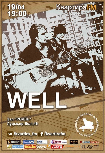 WELL - це щільна стіна гітарного звуку, потужний вокал, щирі тексти про любов, чуттєві клавіші. Гурт існує вже 6 років, має у своєму доробку альбом «Нове життя» (2012).