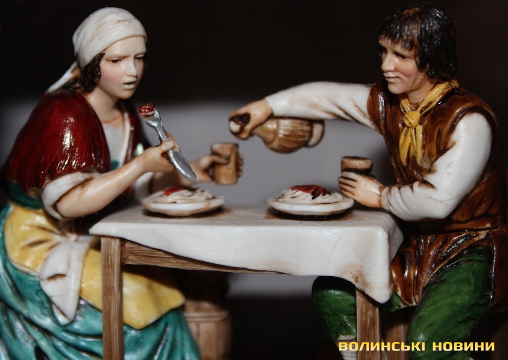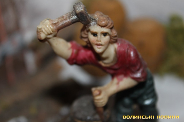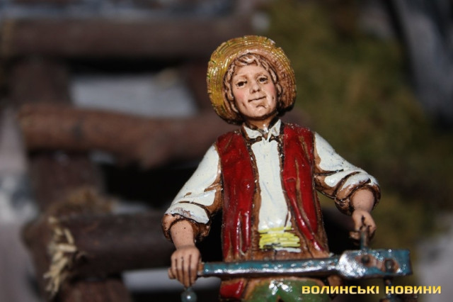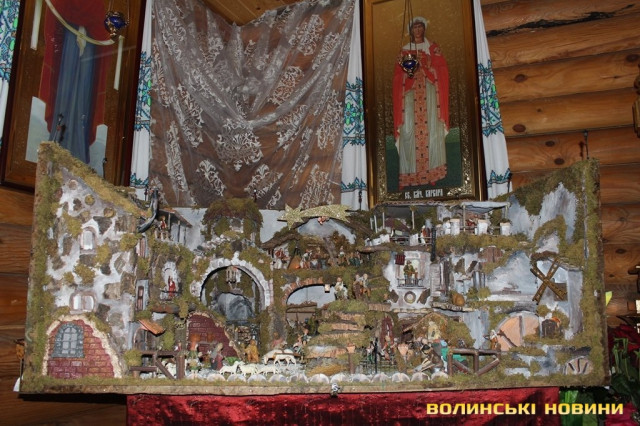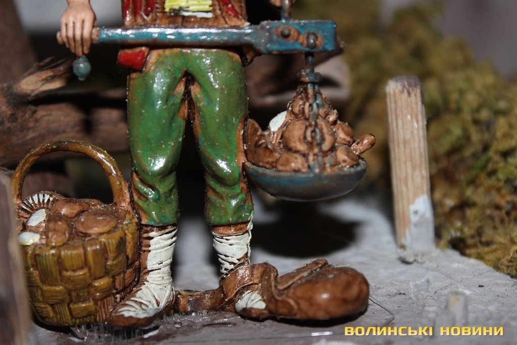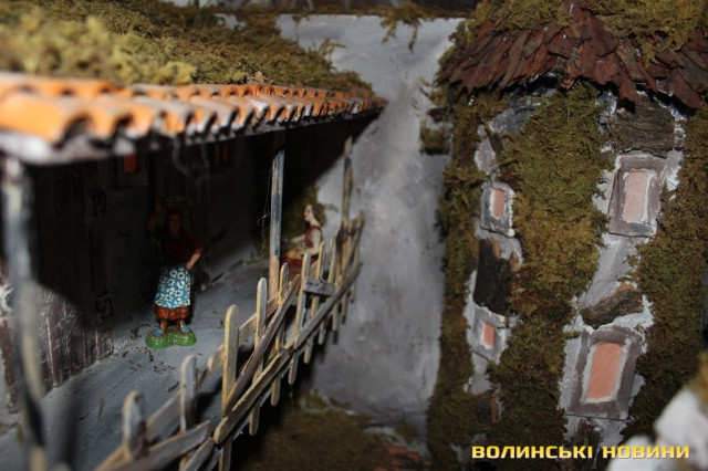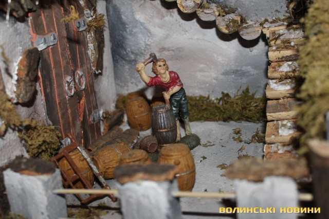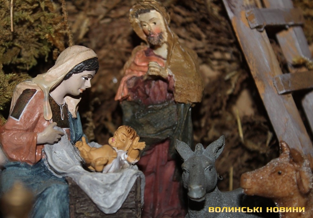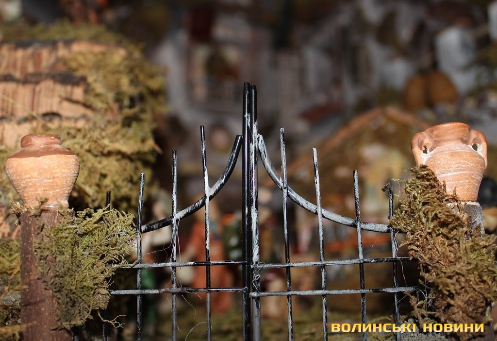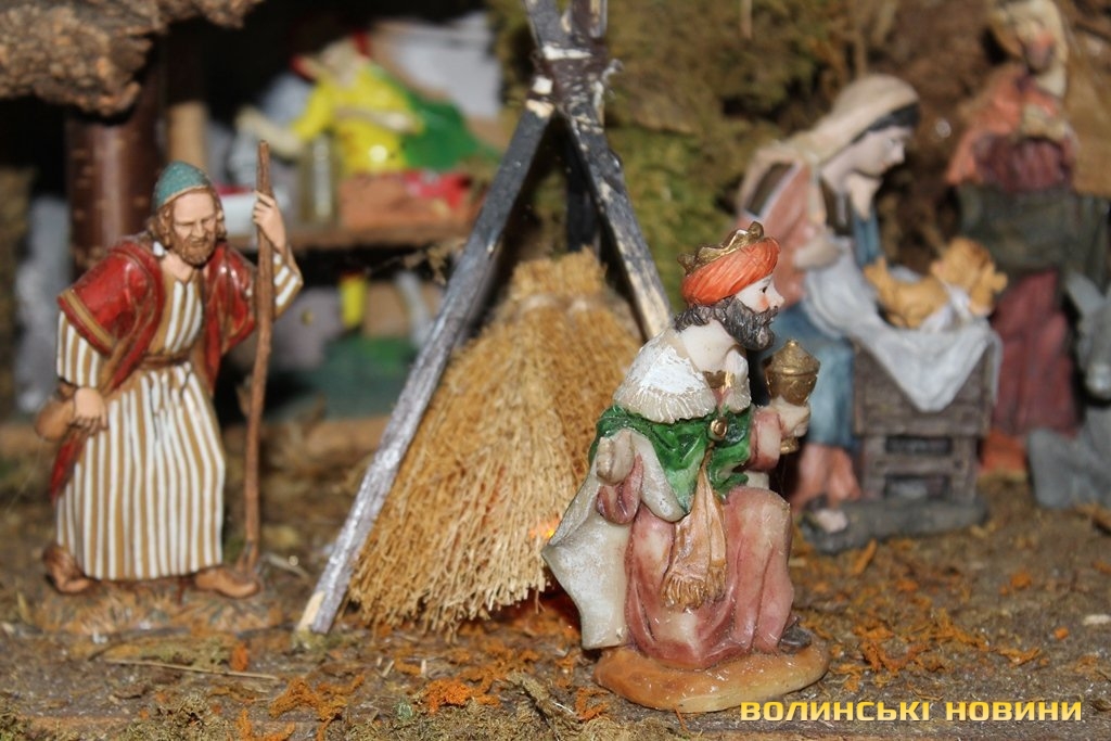 Незвичний вертеп з’явився в однову з храмів Луцька. Його унікальність привертає увагу сотні глядачів, адже таке відчуття, що у ньому вирує життя. Особливо полюбляють збиратися біля вертепу дітлахи. Такий подарунок храму Холмської Богородиці зробила лучанка, яка виїхала в Італію.Вертеп складається з півсотні мініатюрних фігурок: від вельмож до простих селян. Кожна з них не лише статуетка людини, а й певна життєва історія, в якій кожен у русі, будучи зайнятим буденними справами. Одні відпочивають, хтось працює, інші поросят на ринок везуть.А в цей час яскраво світить зірка над новонародженим Ісусом, біля якого стоять ангели і прийшли волхви з дарунками. Навколо триповерхові будиночки у яких багато деталей у мініатюрі. Наприклад, де майстер робить бочки, видно інструмент, з яким він працює.Заглянувши у бокове віконце на другому поверсі, видно, що сім’я зібралась за столом вечеряти і дружина якраз взяла на вилку шматок м’яса й відкрила вуста.Усе це створює відчуття живого дійства. Окрім цього, багато елементів вертепу рухомі і світяться: крутиться вітряк на млині, в колодязі відерце опускається і піднімається, італієць прасує одяг, а пекар закладає у піч паляниці.Ці масштабні мініатюри вражають, адже стільки подій гармонійно розміщені у вертепі, довжина якого 150 сантиметрів, ширина 95 сантиметрів і висота 63 сантиметри.«Фігурки по зовнішності - італійці, вони не відображають тогочасний єврейський побут, але показують плинність життя і головну подію для християн – народження Спасителя. Під час служби, дітей тут збирається багато, навіть, деякі фігурки вже не рухаються, бо малечі цікаво усе потрогати. Але нічого страшного, ми потім усе перемонтуємо», - каже отець Артем Кованський.Пригадує отець Артем Кованський, що торік у храм Холмської Богородиці завітали гості з Італії і пообіцяли зробити цікавий подарунок до різдвяних свят: «Торік, приїхавши в Україну, вони зайшли в храм Холмської Богородиці, який знаходиться в Луцьку по проспекту Волі, навпроти четвертої гімназії. Гості побачили невеличкий вертеп у святому місці і вирішили на наступний рік виготовити щось унікальне».
