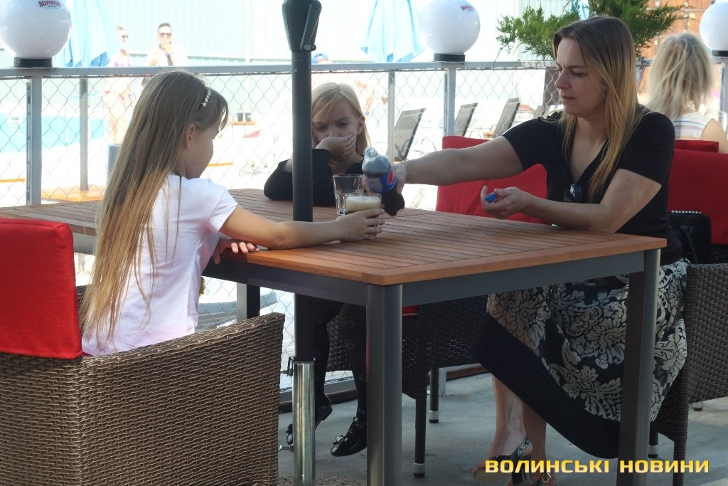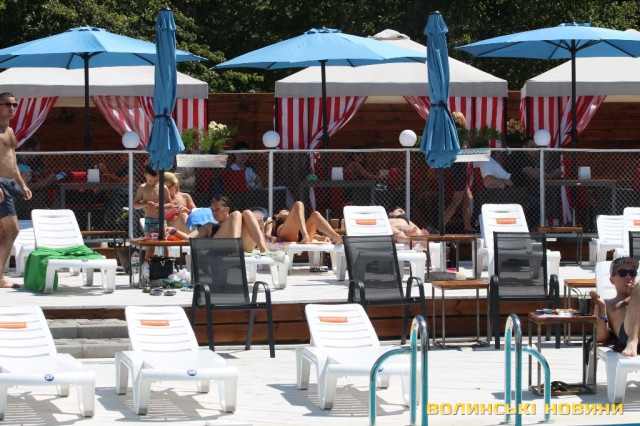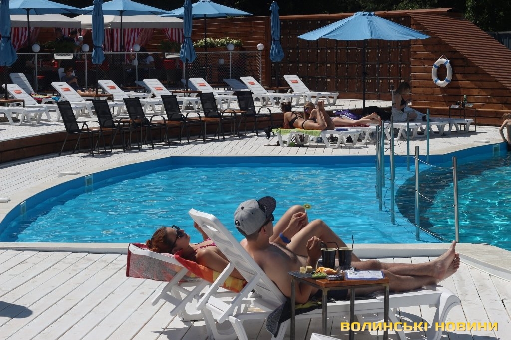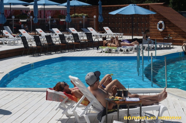 «Це комплекс відпочинку для усієї сім’ї. У нас є два басейни: для дорослих - глибиною 1,5 метра та для діток - 40 сантиметрів заглибшки. Вода у басейнах фільтрується, хлорується та насичується озоном. Крім того, вода у басейнах постійно підігріваються до температури +25 градусів. Для комфортного відпочинку є 65 лежаків. Щодо зони кафе, то тут розташовані 15 столиків на 4 особи та 10 шатрів, у кожному з яких може комфортно розміщуватися до 8 людей. Щодня після 20:00 тут включаємо танцювальну музику», - розповів управляючий.Та додав, що подібні комплекси є у Львові, Києві, Одесі та в Криму.