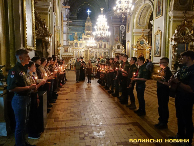 Потому пластуни дарували запаленні свічки присутнім у храмі.