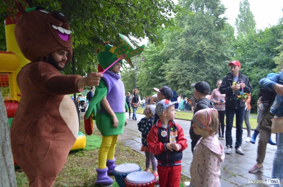 Попри похмуру та подекуди дощову погоду, у центральному парку дуже людно – дітлахи у супроводі батьків навперебій будували стіну, декорували пряники та навіть навчалися основ арт-терапії, інформує ВолиньPost.