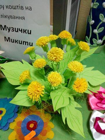 "Вироби підготували вихованці та викладачі відділу декоративно-прикладного мистецтва. Роботи чудові, ціни від 15 до 50 гривень, хоча можете купити й дорожче, якщо вам сподобається робота, адже усі виручені кошти йдуть на добру справу.