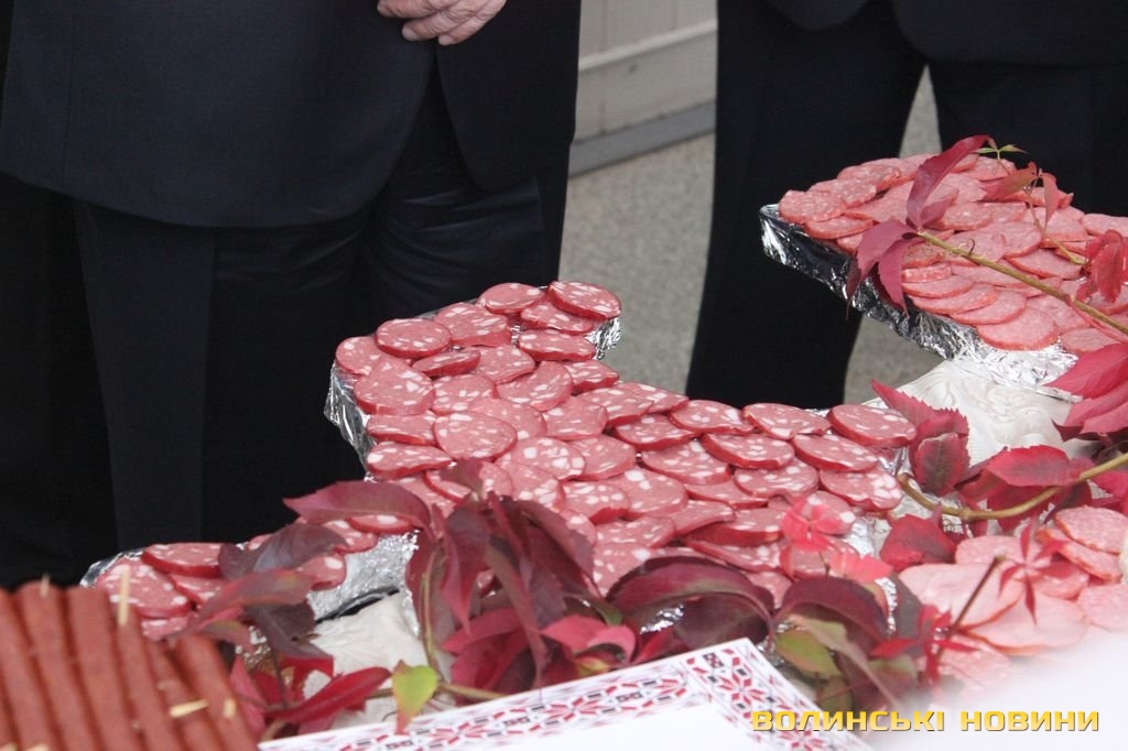 Неабияк здивувала гостей дійства карта України, яку виклали з ковбасних виробів ПП «Злагода» і ТМ «Святко».«А Крим то виклали «Московською» ковбасою!», - жартома дорікнув Гунчик.Проте у відповідь йому заявили, що все-одно півострів залишається українським, як би там не було. «Оце правильно, патріотично!», - відповів голова ОДА.Своєю слабкістю посадовець назвав солодку випічку. Мовляв, йому припали до смаку солодощі та печиво, представлені на стенді.