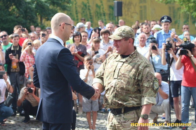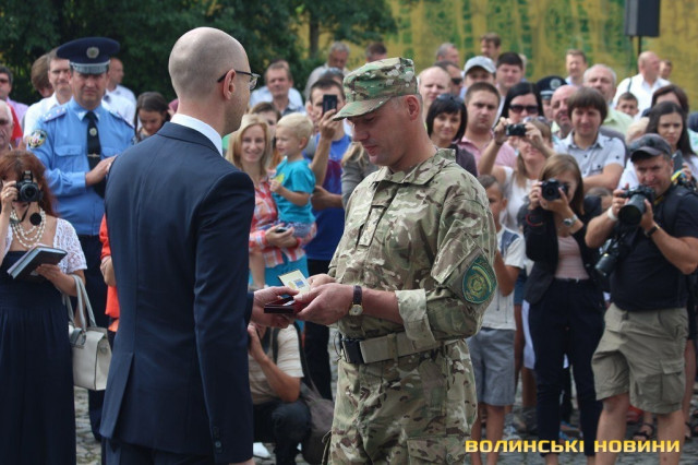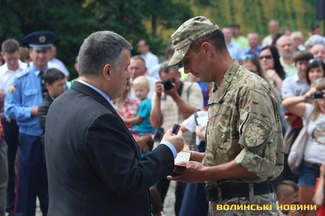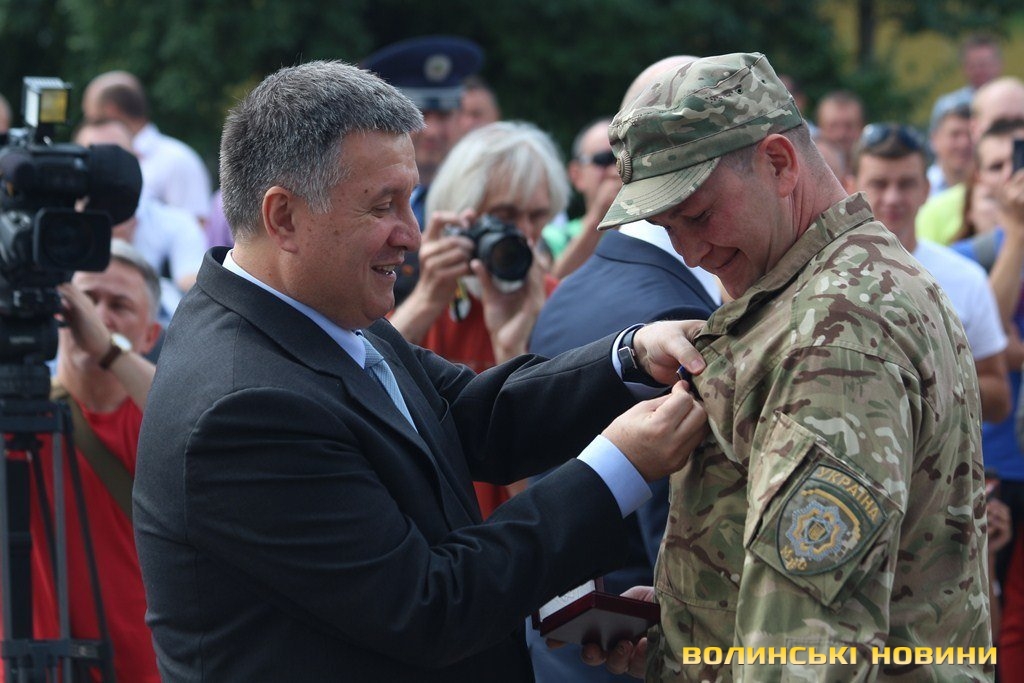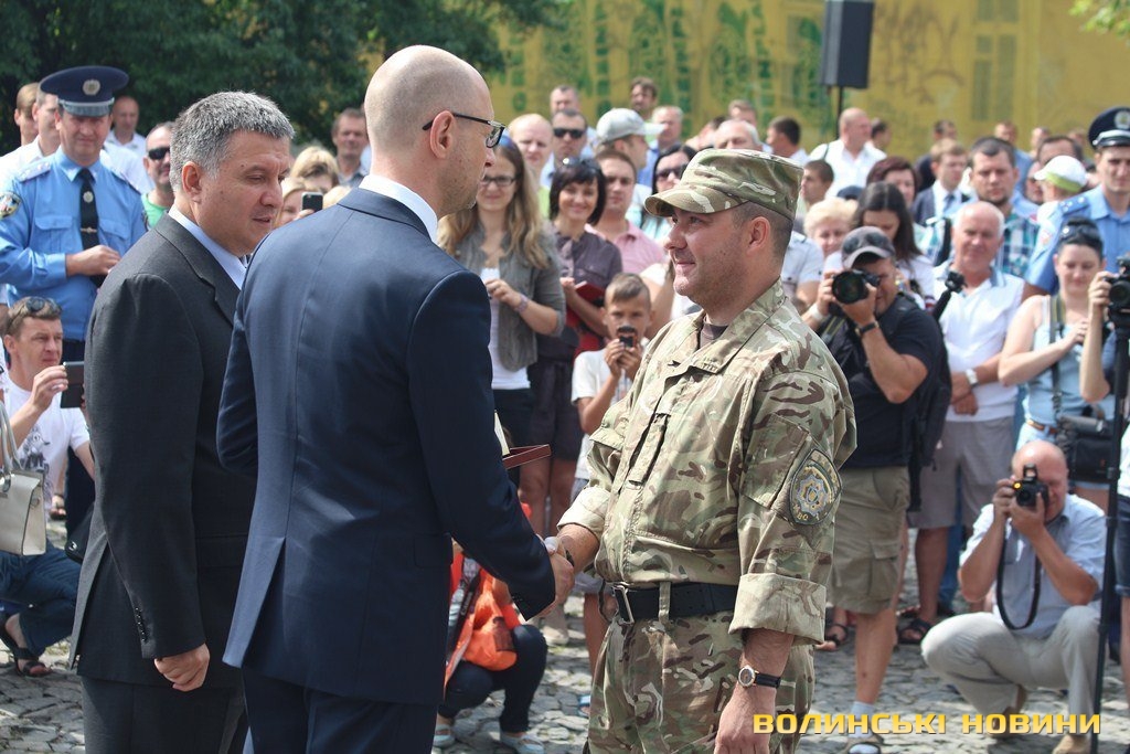 Відзначення бійців відбулося у рамках візиту до Луцька прем’єр-міністра України Арсенія Яценюка, міністра внутрішніх справ України Арсена Авакова, його першого заступника Еки Згуладзе та очільника Київської патрульної поліції Олександра Фацевича.Так, глава уряду Арсеній Яценюк пригадав, як рік тому з Арсеном Аваковим вивозили із Дніпропетровська трьох бійців «Світязя», які виходили з оточення під Іловайськом.