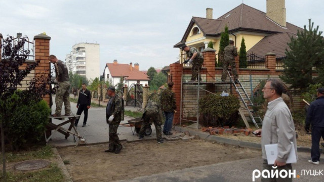 Ветерани АТО розбирають паркан навколо віп-забудови у Луцьку. Про це інформує Район.Луцьк.