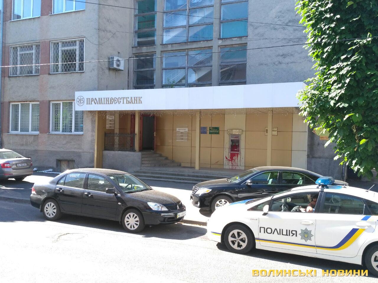 Банкомат Промінвестбанку, що знаходиться на вулиці Степана Бандери у Луцьку, облили червоною фарбою.