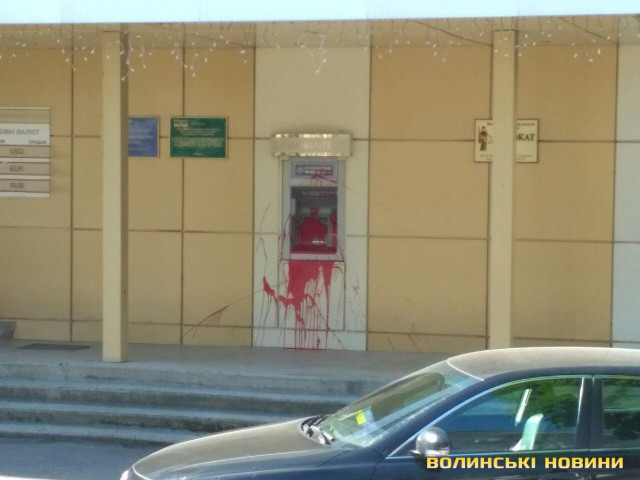 У Луцьку банкомат облили червоною фарбою. ФОТО