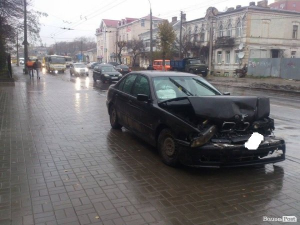 Зі слів очевидців, на вулиці Ковельській перед переходом біля будівлі, де розташований офіс облспоживспілки, BMW врізалося в мікроавтобус Volkswagen.