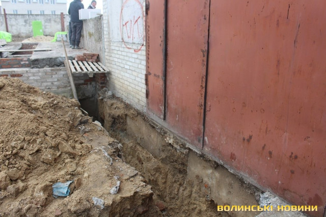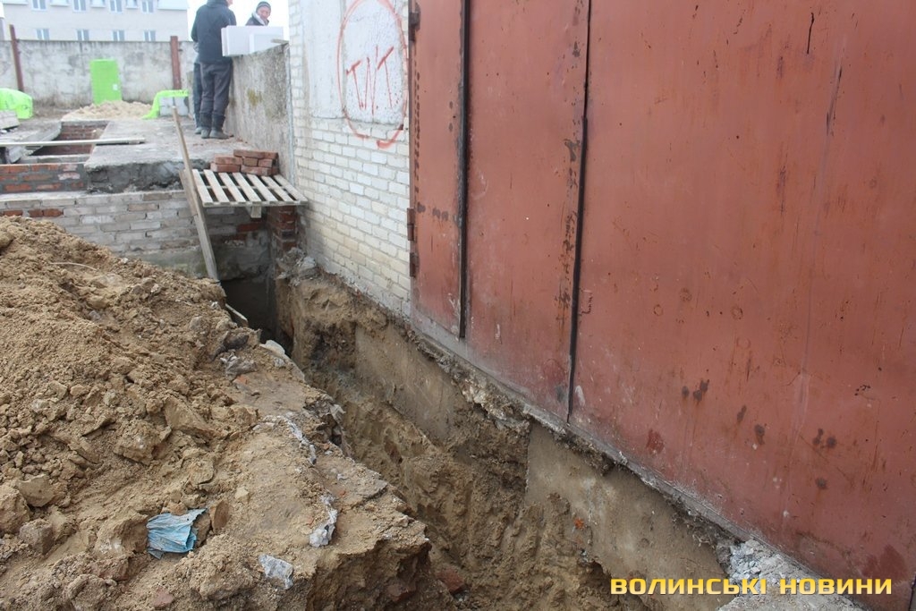 «У зв’язку з тим, що особа, яка здійснює будівництво, - невідома, направлено лист в Луцький відділ поліції Головного управління поліції у Волинській області, з проханням встановити особу, що здійснює (здійснила) це будівництво».Зауважимо, що збоку гаража видно тріщини на стінах й місця, де підкопували під фундамент і залишили дірку.Найвищої точки кипіння конфлікт набув сьогодні, 18-го лютого.