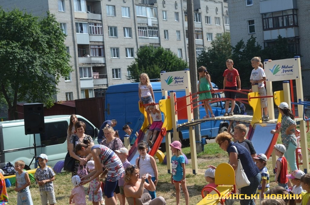 Сотні луцьких дітлахів випробували нові гойдалки та гірки на дитячих майданчиках, подарованих благодійним фондом «Фонд Ігоря Палиці – Новий Луцьк».