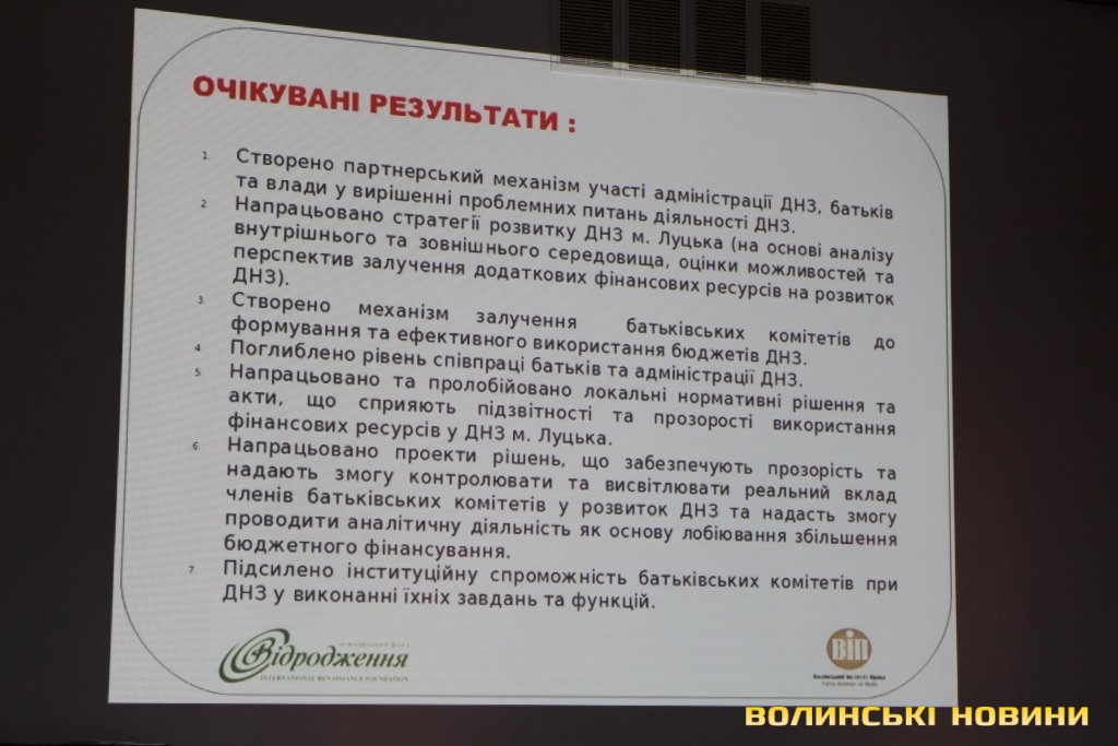Про це йшлося під час презентації проекту, що має на меті впровадити ефективні механізми діяльності батьківських рад та комітетів, забезпечити прозорість і підзвітність коштів, що використовуються на розвиток дошкільних навчальних закладів 15 грудня у Луцьку.