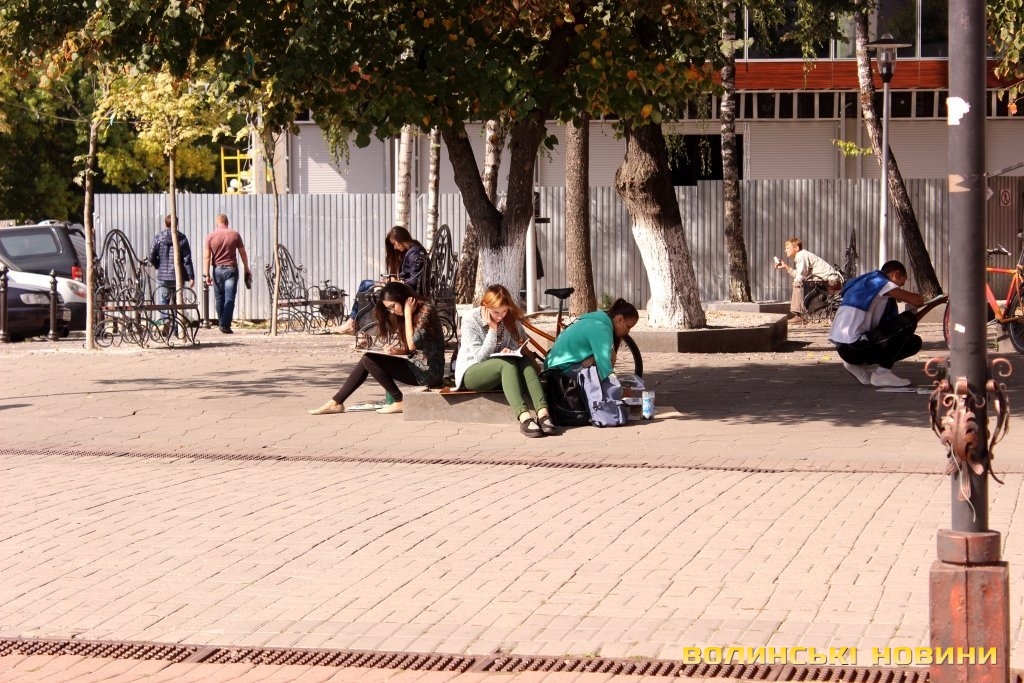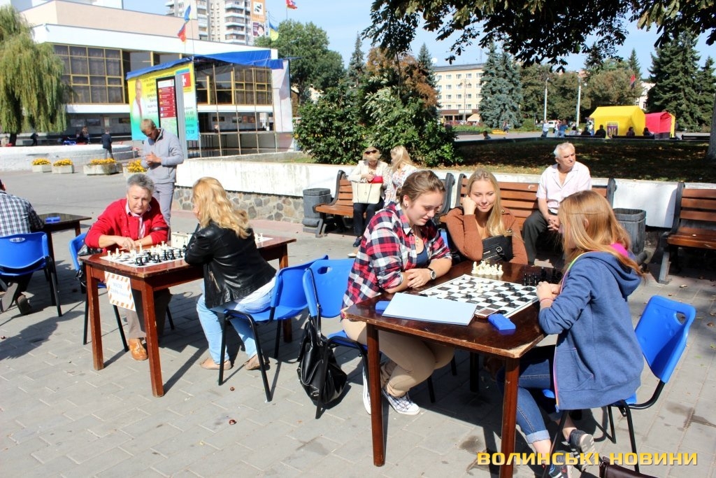 Влаштувати майданчики для відпочинку лучан на тротуарі, де постійно паркуються авто, вирішили в управлінні туризму та промоції міста. Так, сьогодні на пішохідній вулиці Лесі Українки малювали картини юні художники, відбулося заняття з хатха-йоги, кожен охочий мав можливість зіграти партію в шахи або шашки. Також обладнали куточок для відпочинку, де молодь мала нагоду почитати книги та випити філіжанку кави.