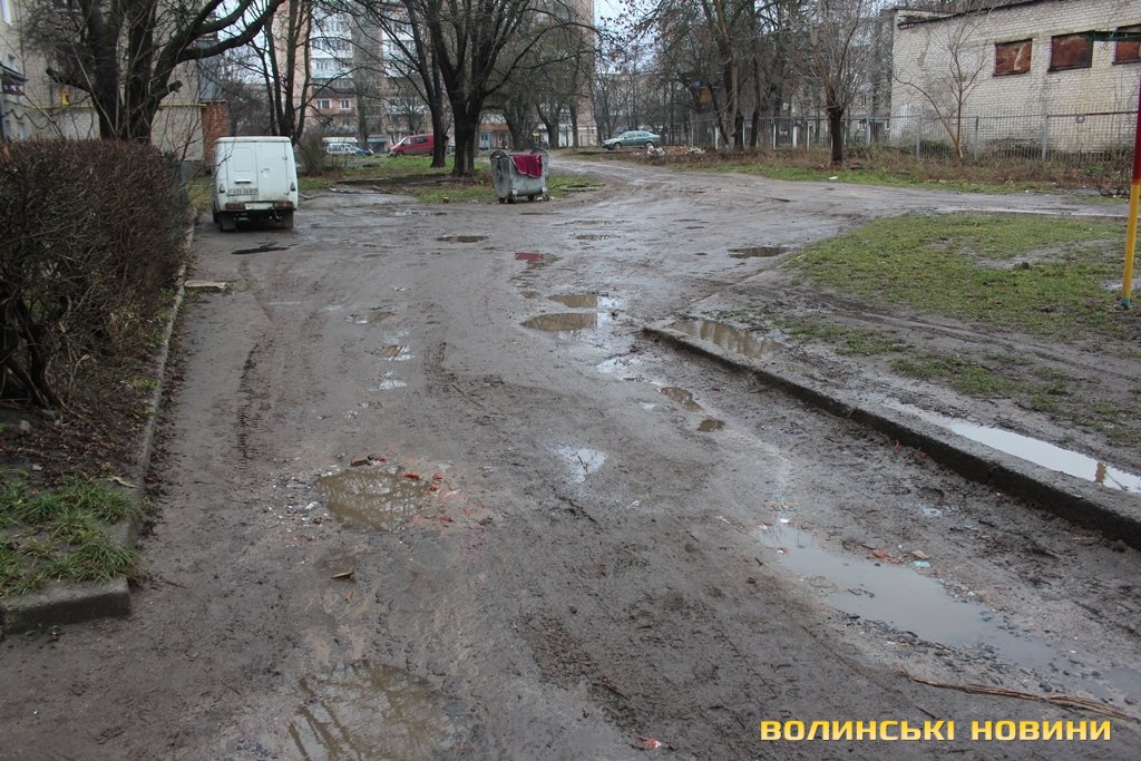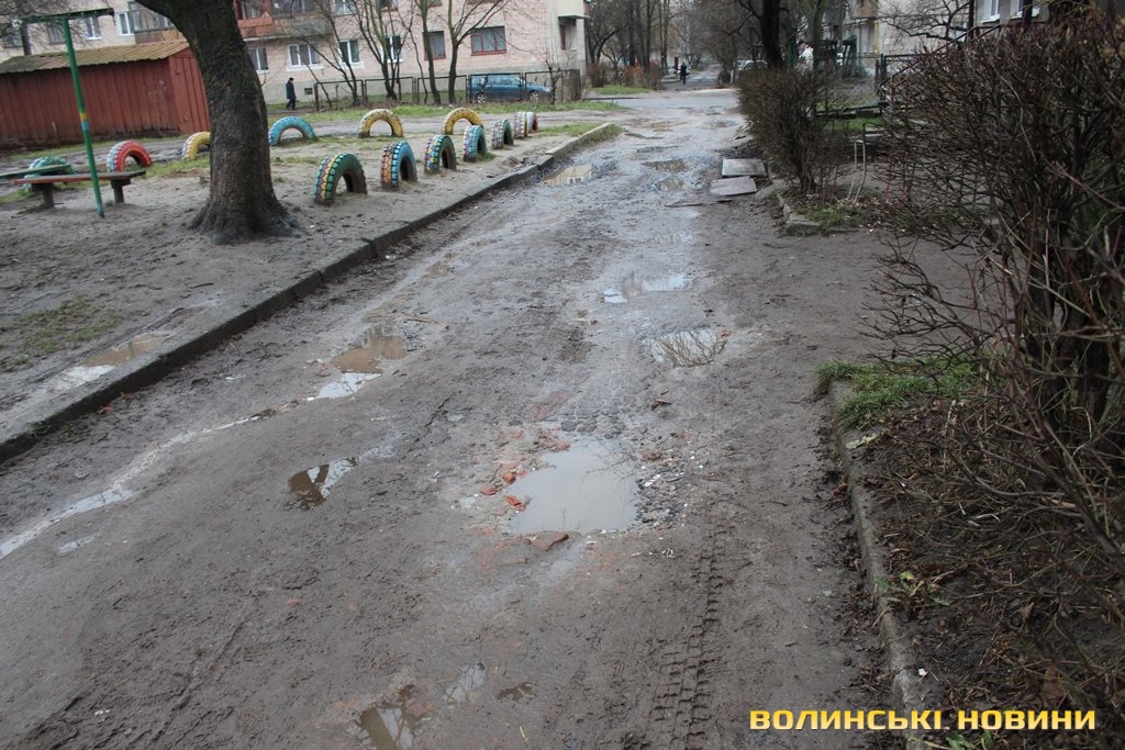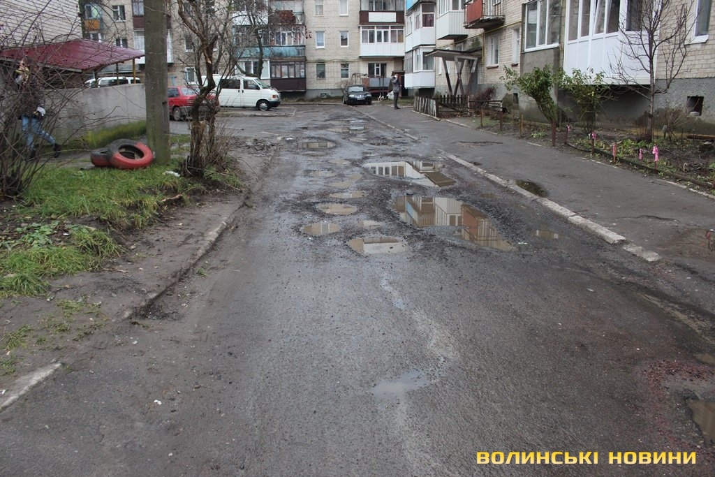 «Я тут проживаю з 1997 року й у нас жодного разу не було ремонту. Ми вже робили десятки звернень, в міській раді обходили всі кабінети й раніше на нас навіть дивитися не хотіли. У дворі як поставлять дві машини, то і швидка допомога не проїде, машини на бордюри ставлять. Тут і зимою не пройти, у дощ води по коліна, а коли викликаєш таксі, називаєш адресу, то відмовляються їхати», - розповідає чоловік.Зі слів директора ЖКГ Луцької міськради Юрія Крася, відремонтувати мають намір 50 прибудинкових територій.
