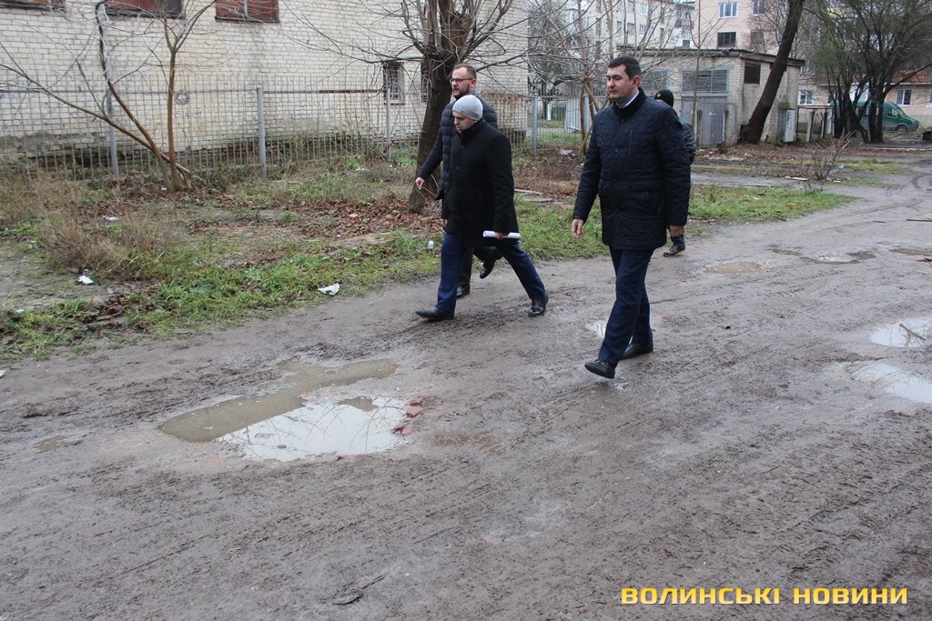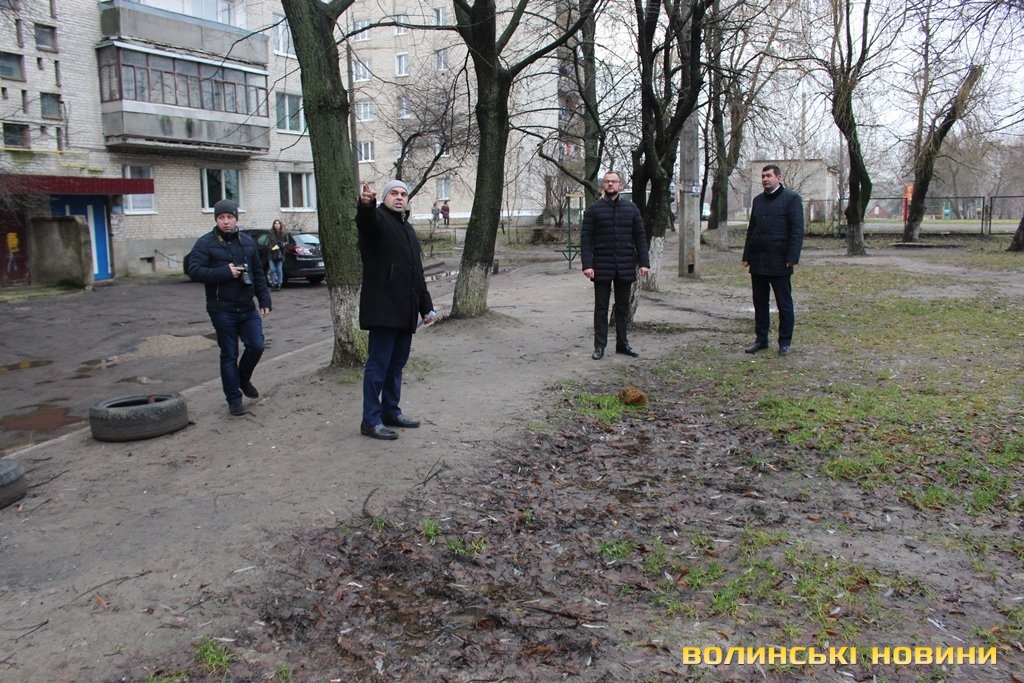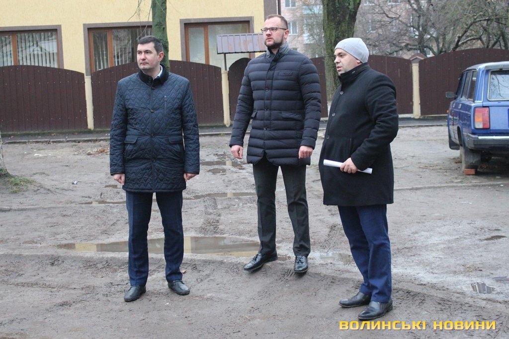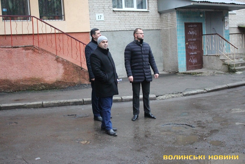 Інспектували стан дворів в обласному центрі перший заступник Луцького міського голови Григорій Недопад, радник Луцького міського голови Ігор Поліщук і директор департаменту ЖКГ Юрій Крась.