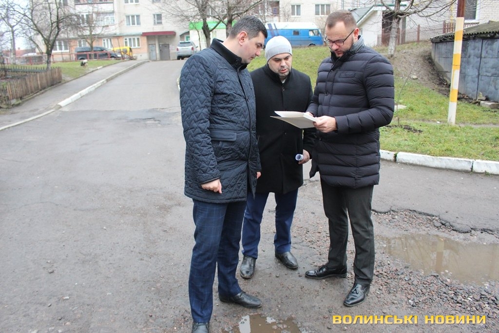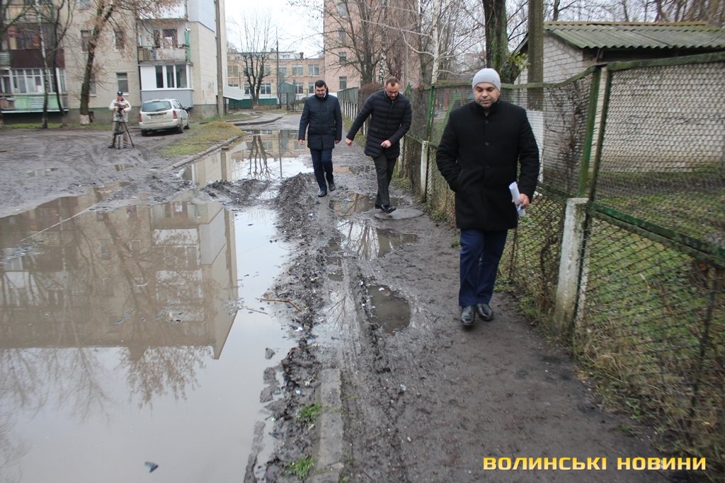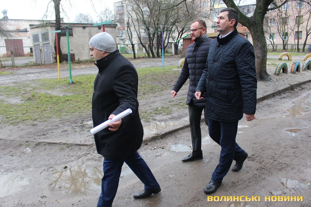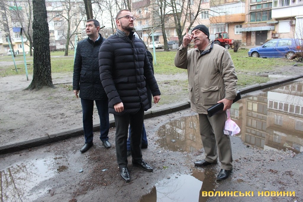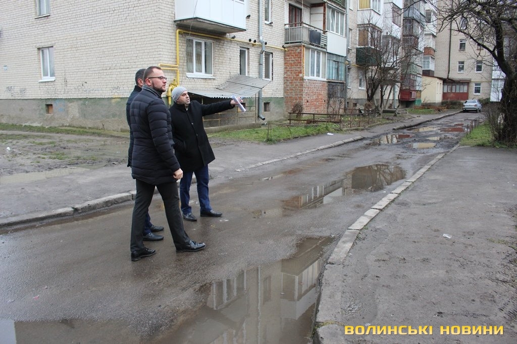 Інспектували стан дворів в обласному центрі перший заступник Луцького міського голови Григорій Недопад, радник Луцького міського голови Ігор Поліщук і директор департаменту ЖКГ Юрій Крась.