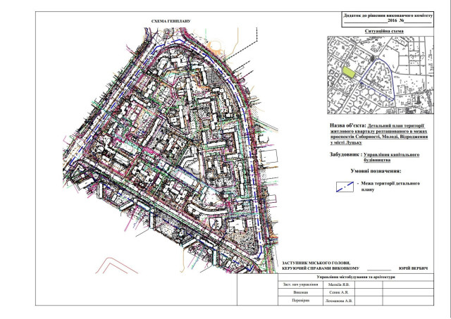 Членам виконкому презентували проект рішення про надання дозволу на розробку проекту детального плану території житлового кварталу, розташованого в межах проспектів Соборності, Молоді, Відродження, враховуючи клопотання ТзОВ «Ленд Арт Сервіс».