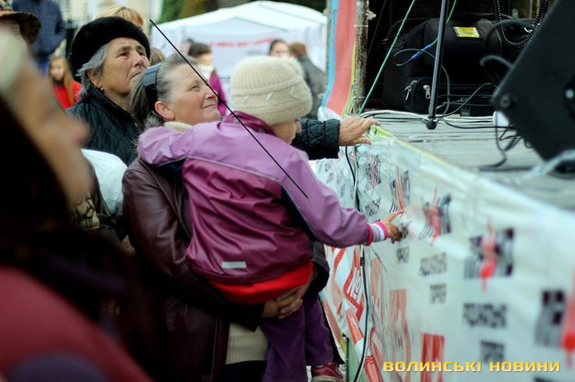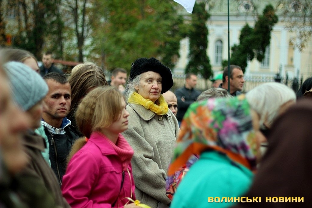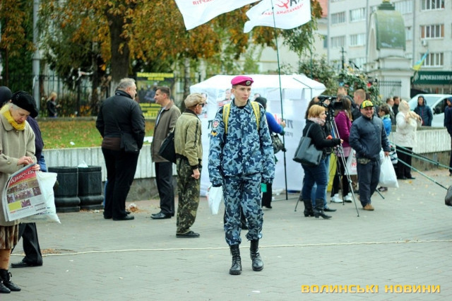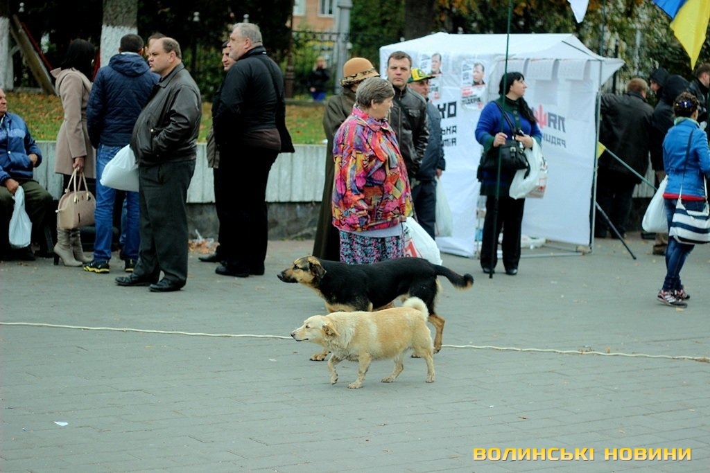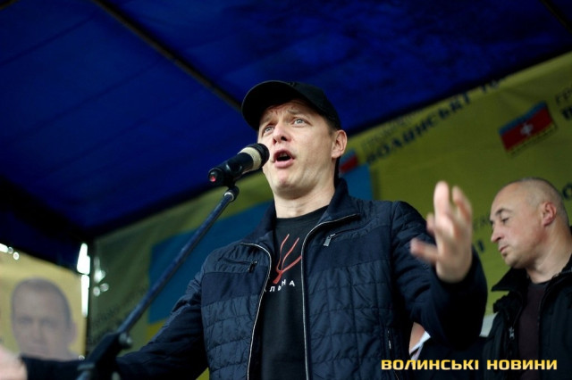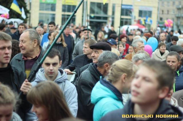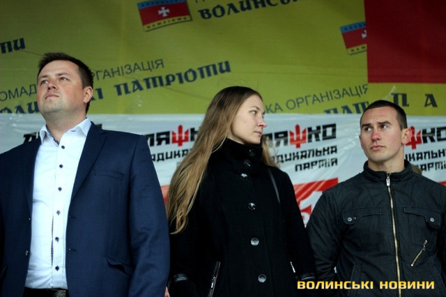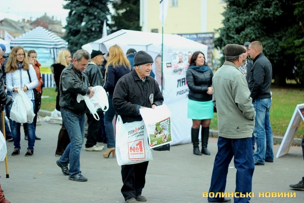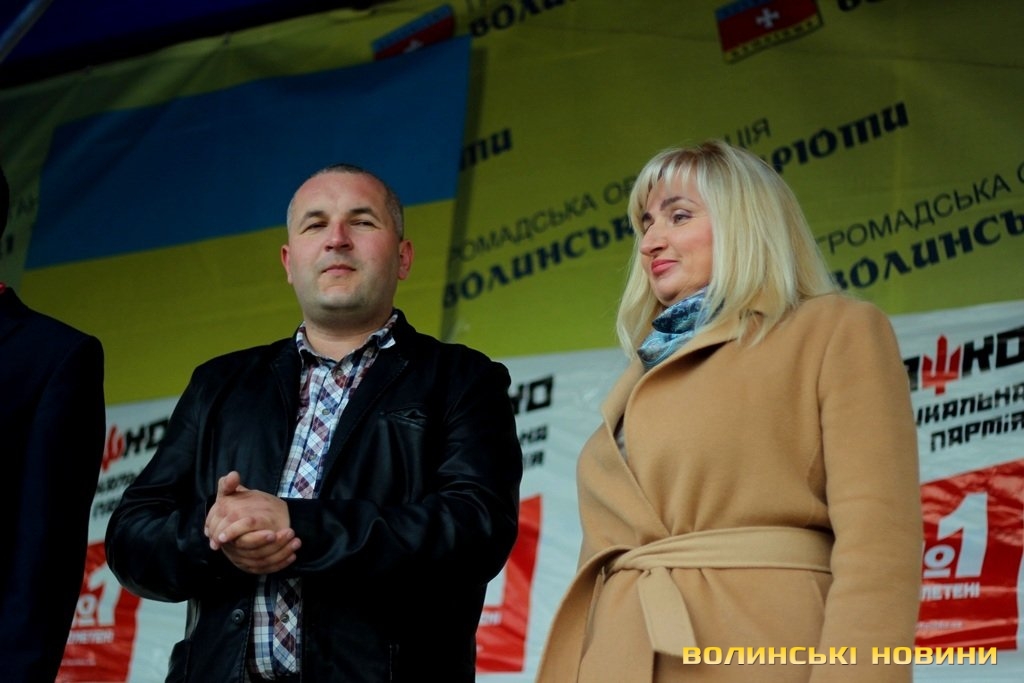 Окремі прихильники наполегливо чекали свого «героя» з вилами напоготові у прямому сенсі. До слова, захід відвідали орієнтовно понад чотири сотні краян. І ось майже о 17 годині лідер радикалів вийшов на сцену. Не довго думаючи, він зауважив, мовляв, на Волині – одні олігархи та «держиморди». І, звісно ж, їх потрібно негайно викорінювати та «не пускати до корита». Також він звернувся до присутніх із проханням «не продавати власні голоси за гривні та гречку». «307 депутатів, наче свині, знову рвуться до владного корита. Але, чому ж ви, св*лочі, туди претесь? Дзуськи вам, а не парламент!», - емоційно сказав він, зауваживши, що в радикальній партії немає жодної людини, яка колись була у Раді, окрім нього самого, а також лише одного пенсіонера, той – син легендарного командира УПА Романа Шухевича Юрій.