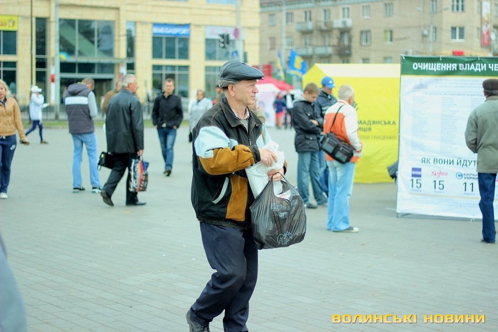 Тож з 16-ї по 17-ту з лучанами розмовяли члени його партії. Особливо вразило присутніх порівняння сучасного «любителя вил» із Великим Каменярем Іваном Франком заступником начальника міського управління освіти Лілією Кревською під час її виступу перед мешканцями обласного центру: