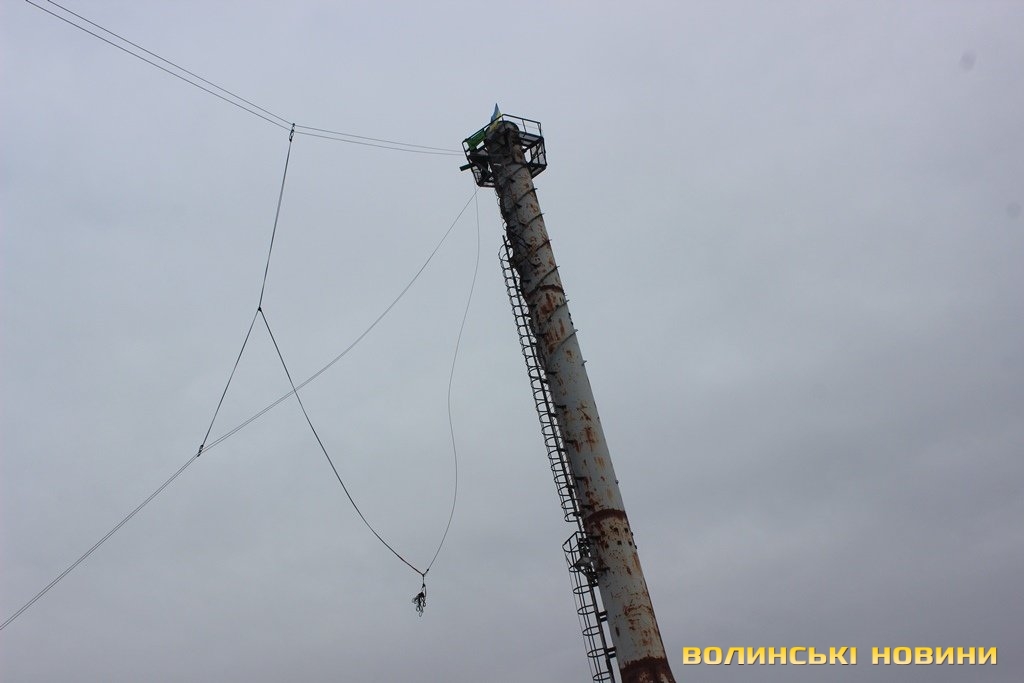 Стрибки "Роупджампінг" розпочалися в Луцьку на підтримку Євромайдану. Упродовж двох днів приблизно сотня людей "ловитиме" гострі відчуття в альпіністському спорядженні, стрибаючи з 52-х метрової труби.