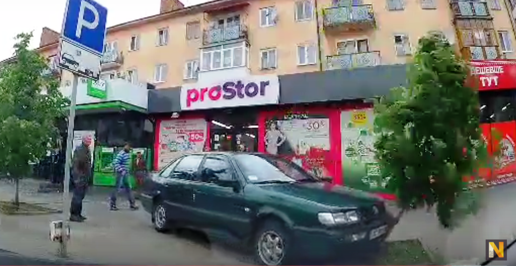 16 травня о 9 годині на вулиці Привокзальній помітили автомобіль, який несподівано виїхав на тротуар, неквапно «посадив» на капот перехожого, збив кілька вазонів і зламав два дерева.