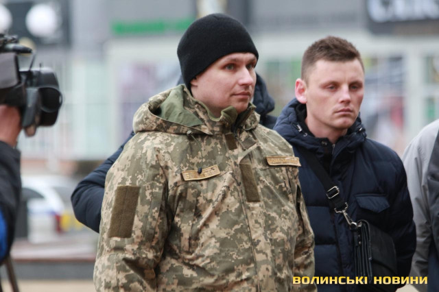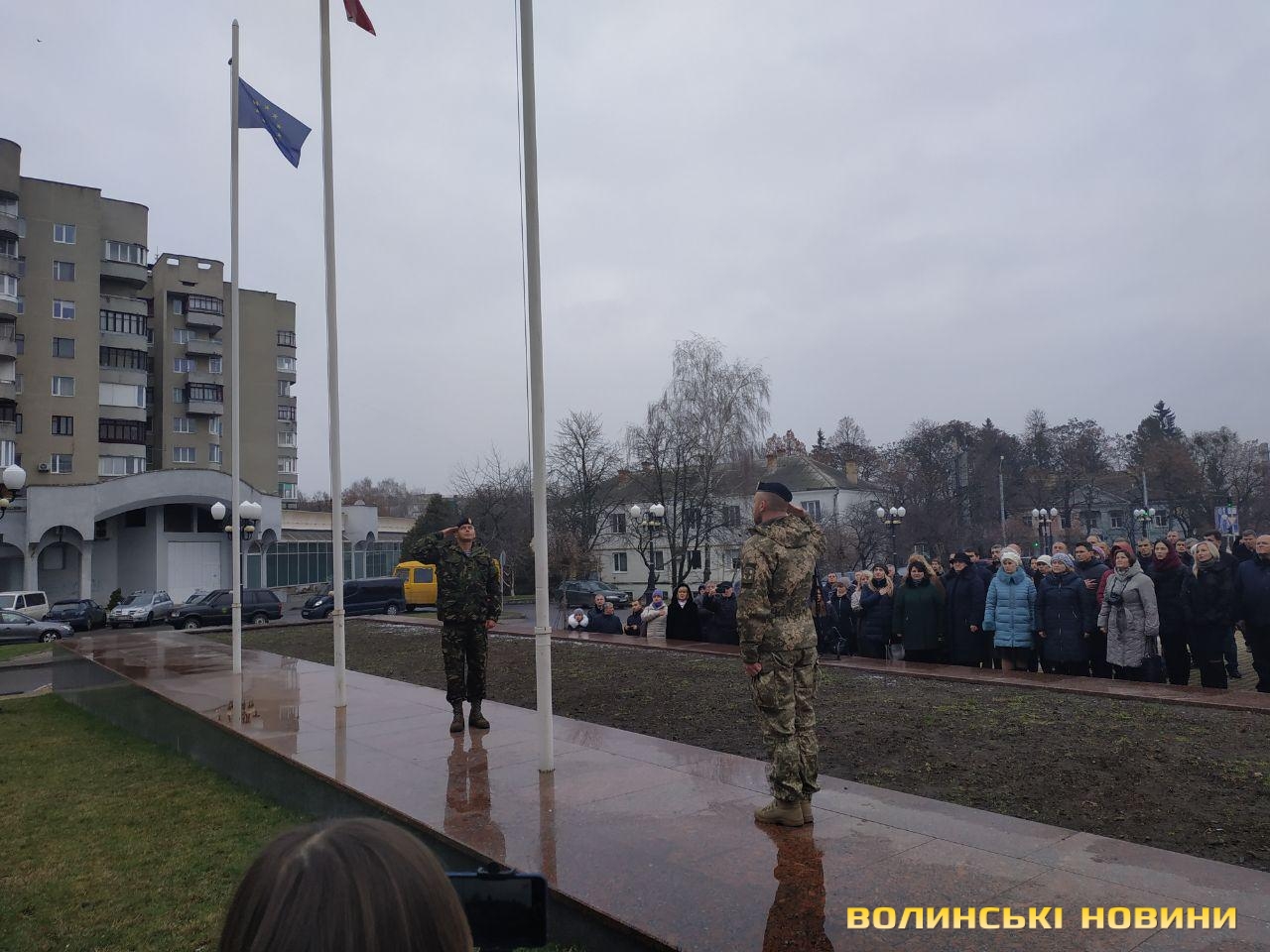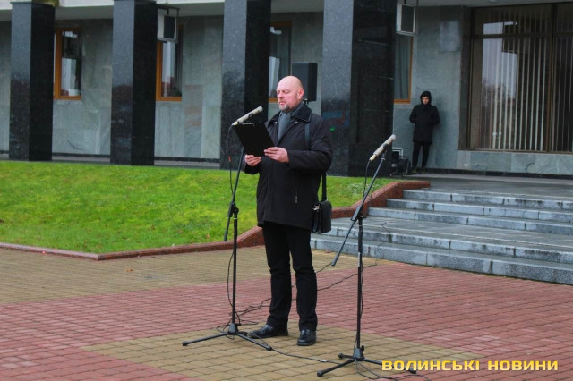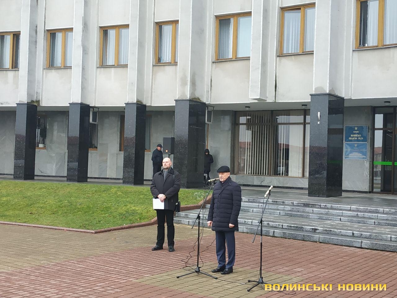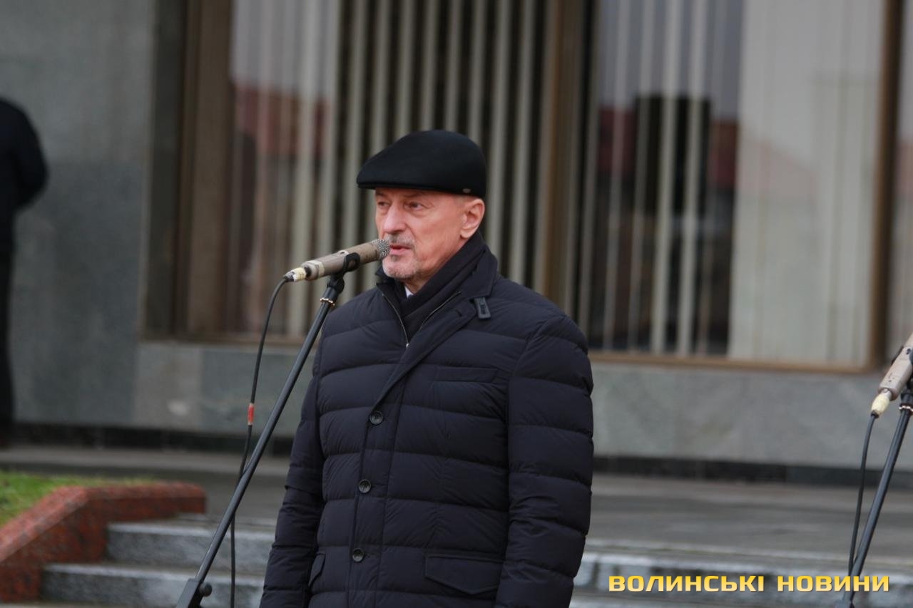 В урочистому піднятті прапора військово-морських сил України взяли участь голова облдержадміністрації Олександр Савченко, учасники антитерористичної операції, працівники ОДА та небайдужі лучани, які прийшли, аби підтримати моряків, над якими триває суд у Російській Федерації.«Коли далеко від фронту, то інакше сприймаєш події, сприйняття уповільнюється. І якщо раніше Росія говорила, що вона ні при чому, то зараз весь світ побачив, що це не так. Адже 25 листопада Російська Федерація відкрито здійснила збройний напад на українські кораблі. Наші моряки у тих умовах діяли, як і всі патріоти: з честю і гідністю. Так само гордо вони повернуться з полону і ми проведемо з ними парад, але це буде не сьогодні і, мабуть, не завтра», - наголосив голова Волинської ОДА Олександр Савченко. Та окремо подякував волонтерам із числа святих отців за те, що вони допомагають патріотам і духовно їх підтримують.Старший сержант, військовий піхотинець Анатолій Горун отримав право на підняття прапора.Зауважимо, аналогічні заходи відбулися у кожному районному центрі області. До слова, до акції могли долучатися усі охочі.